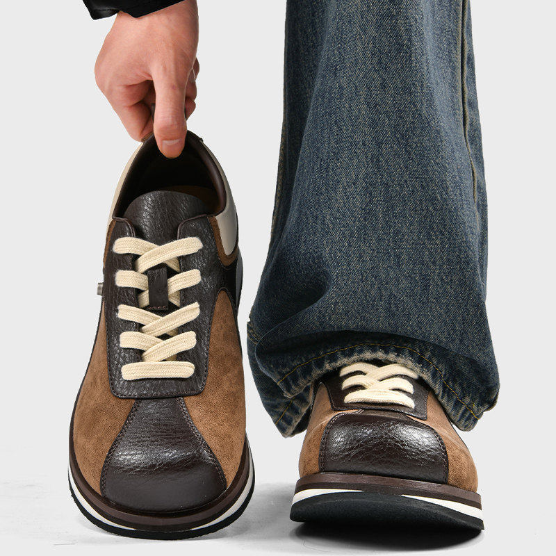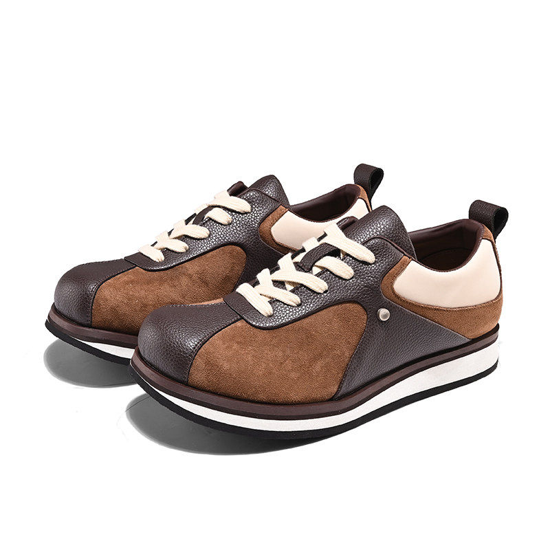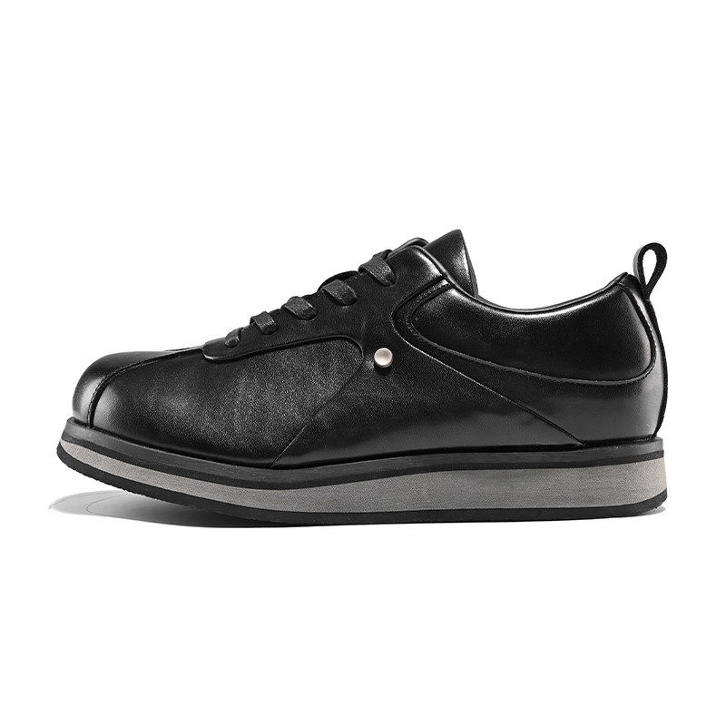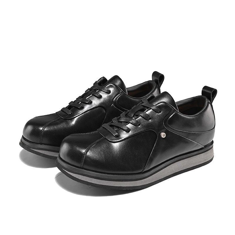 黑色复古德比鞋男款女厚底运动休闲德训鞋内增高牛皮高级感阿甘鞋