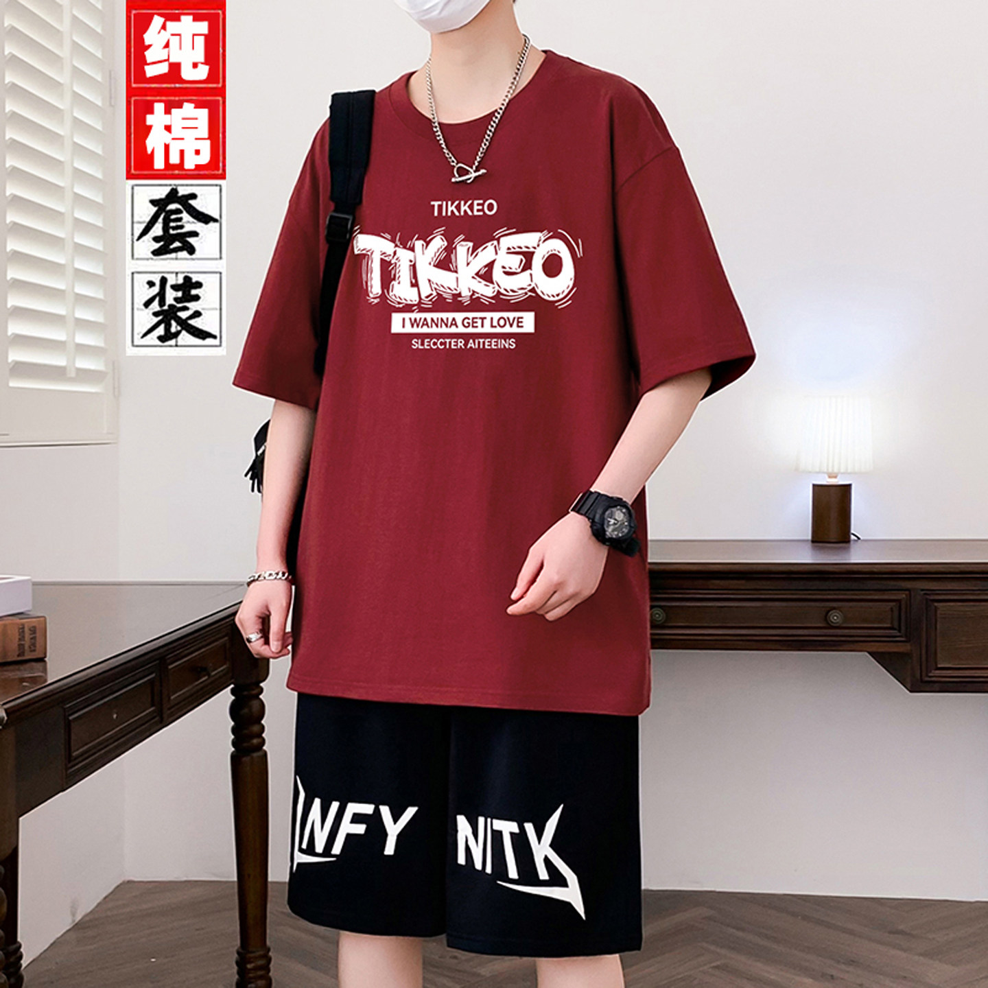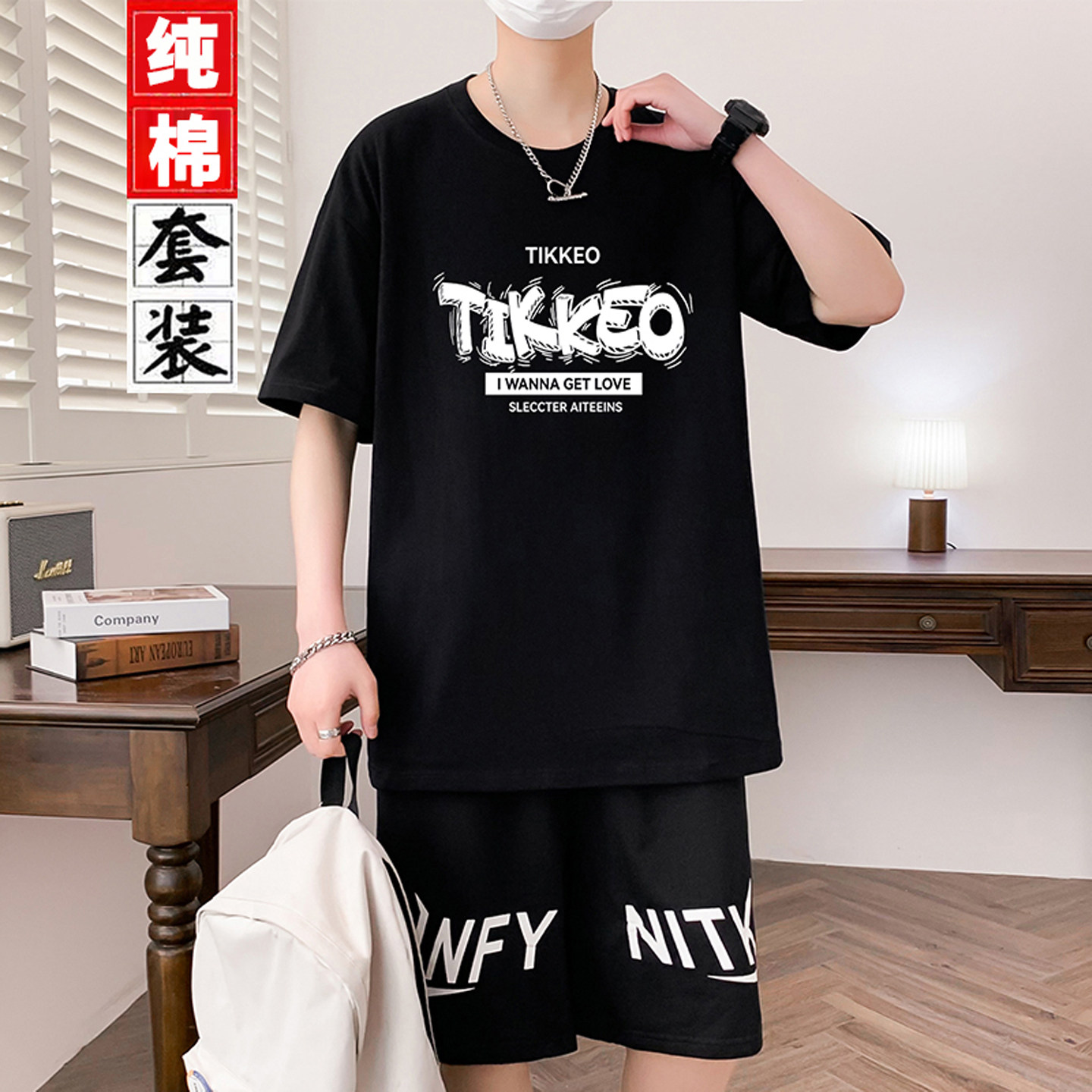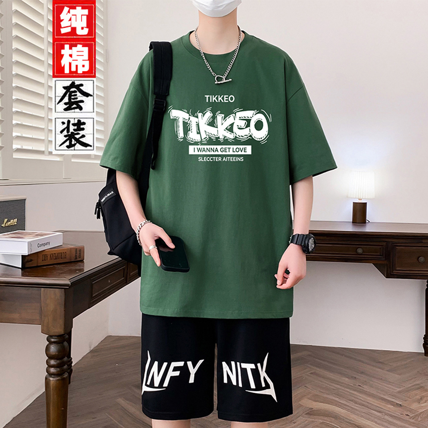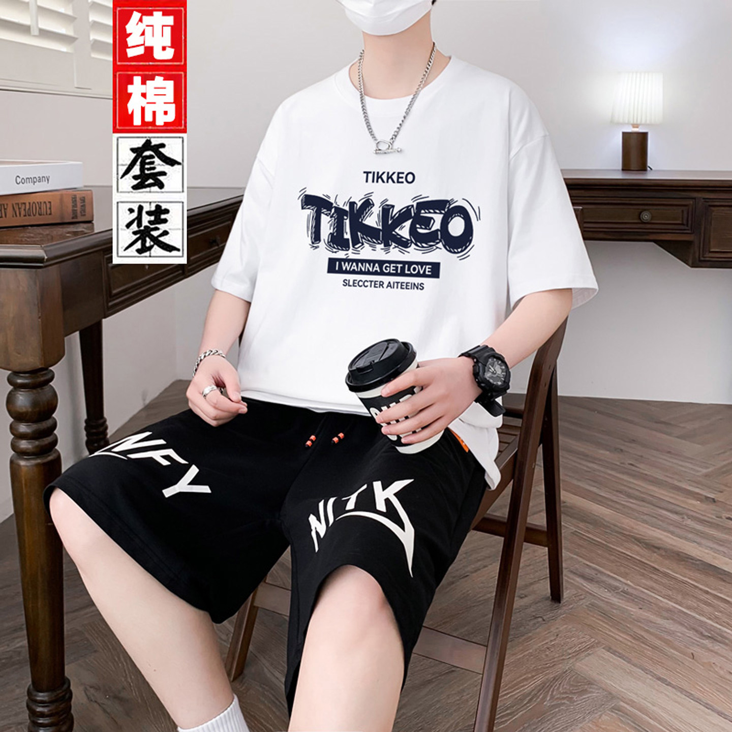纯棉青少年短袖运动套装夏季新款t恤青少年男装帅气学生潮流套装