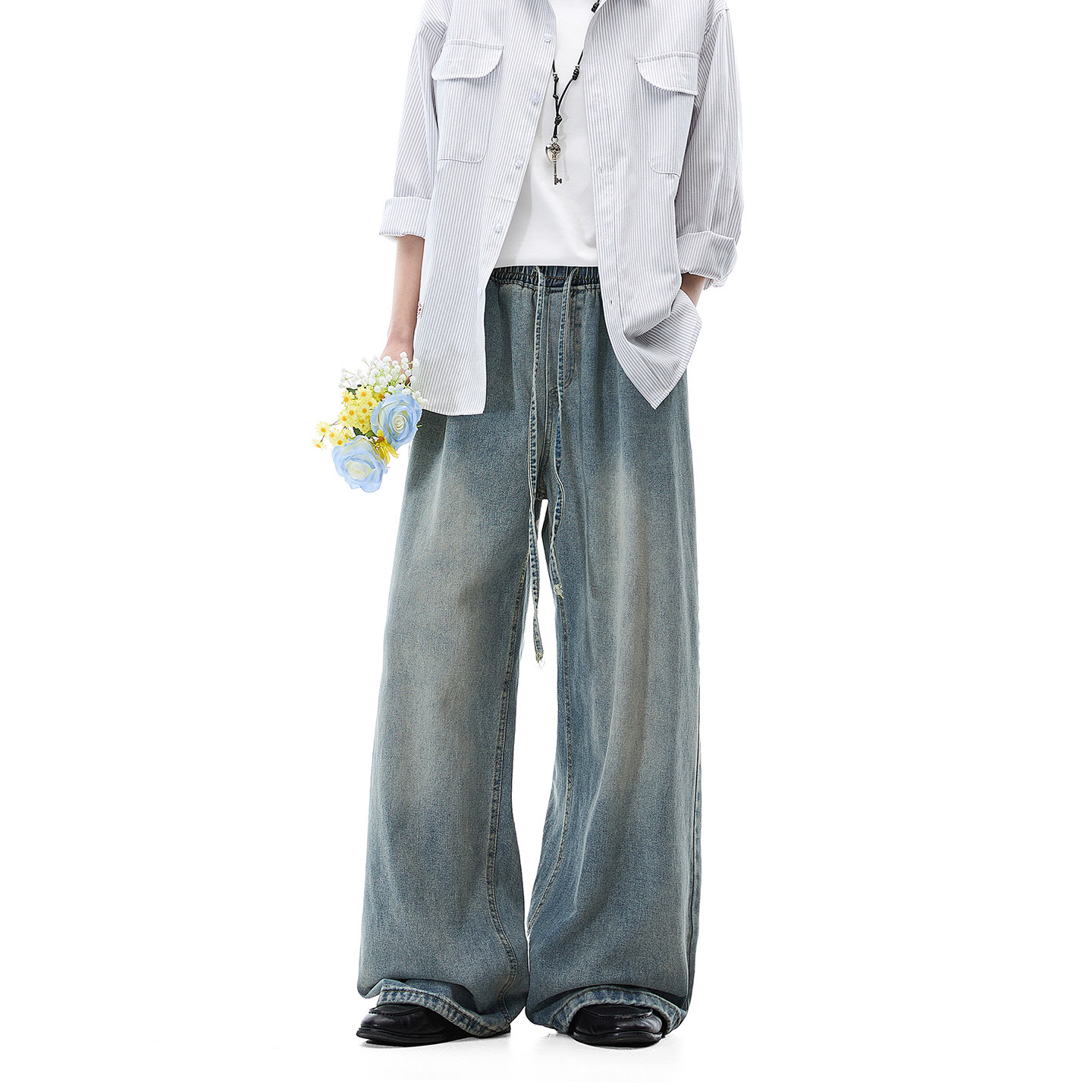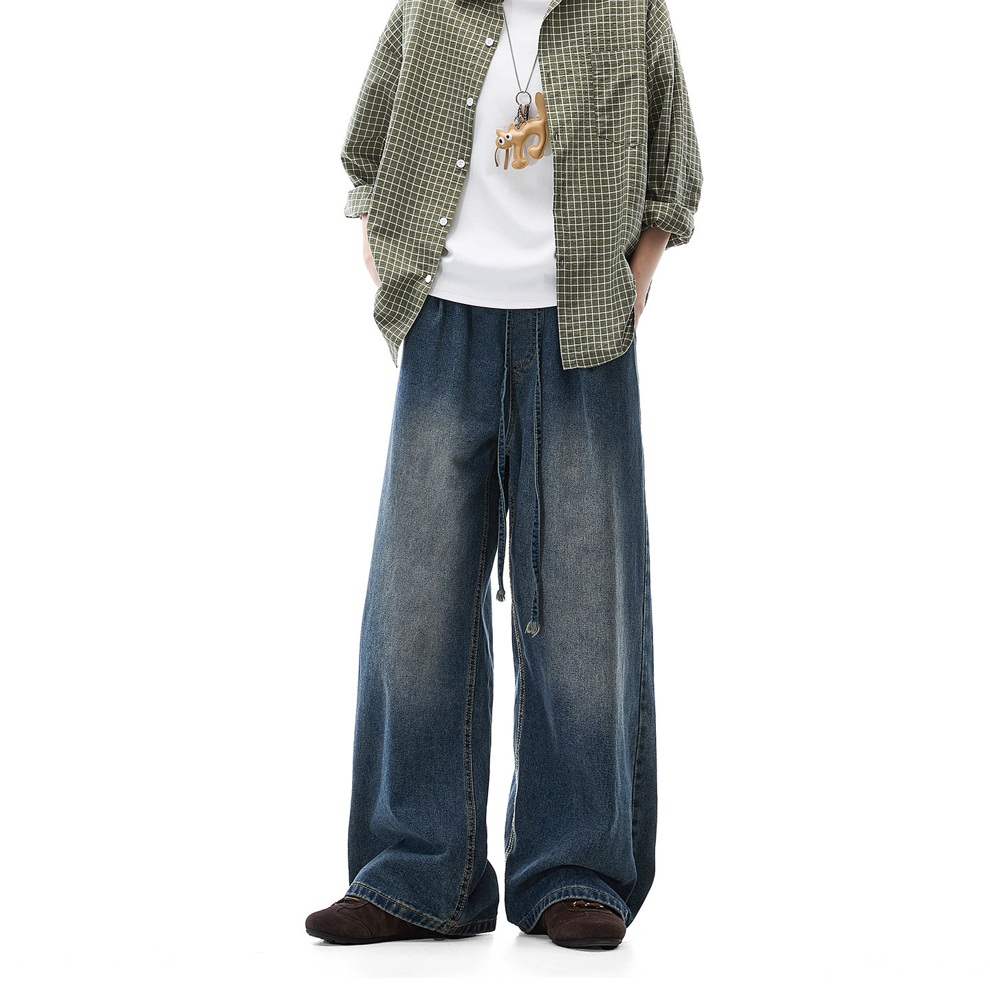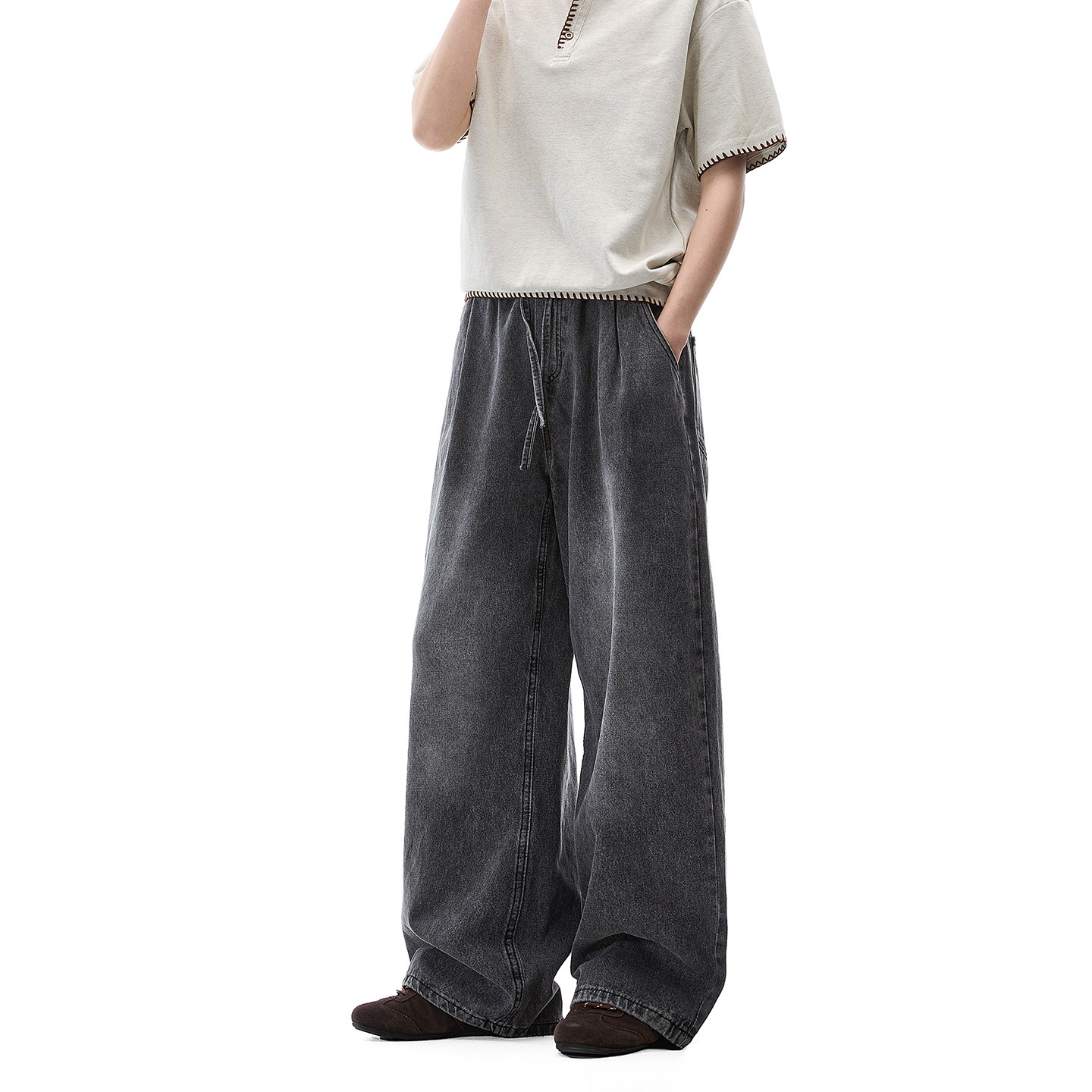 Dream made 美式水洗抽绳牛仔裤男款春季直筒阔腿裤2026新款裤子