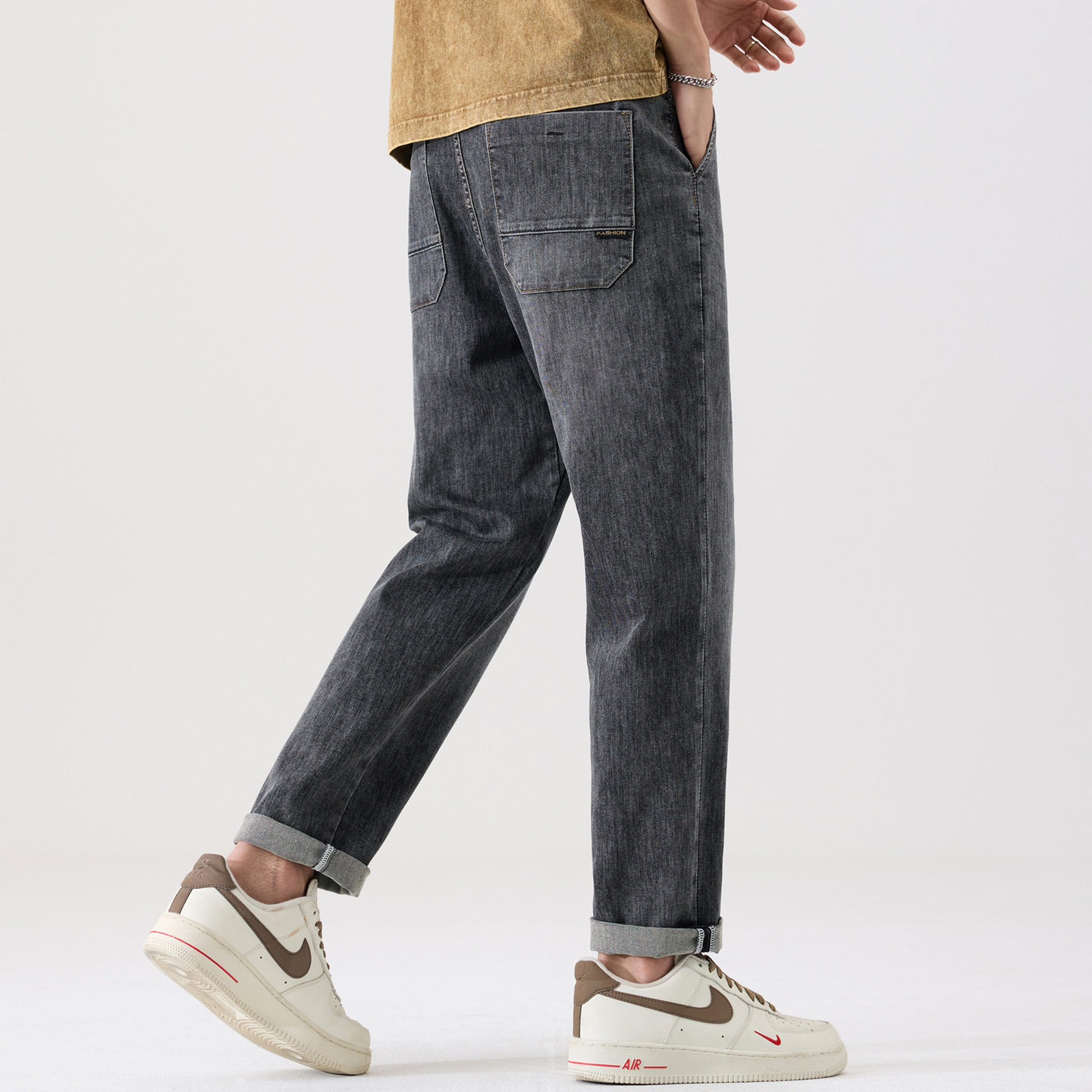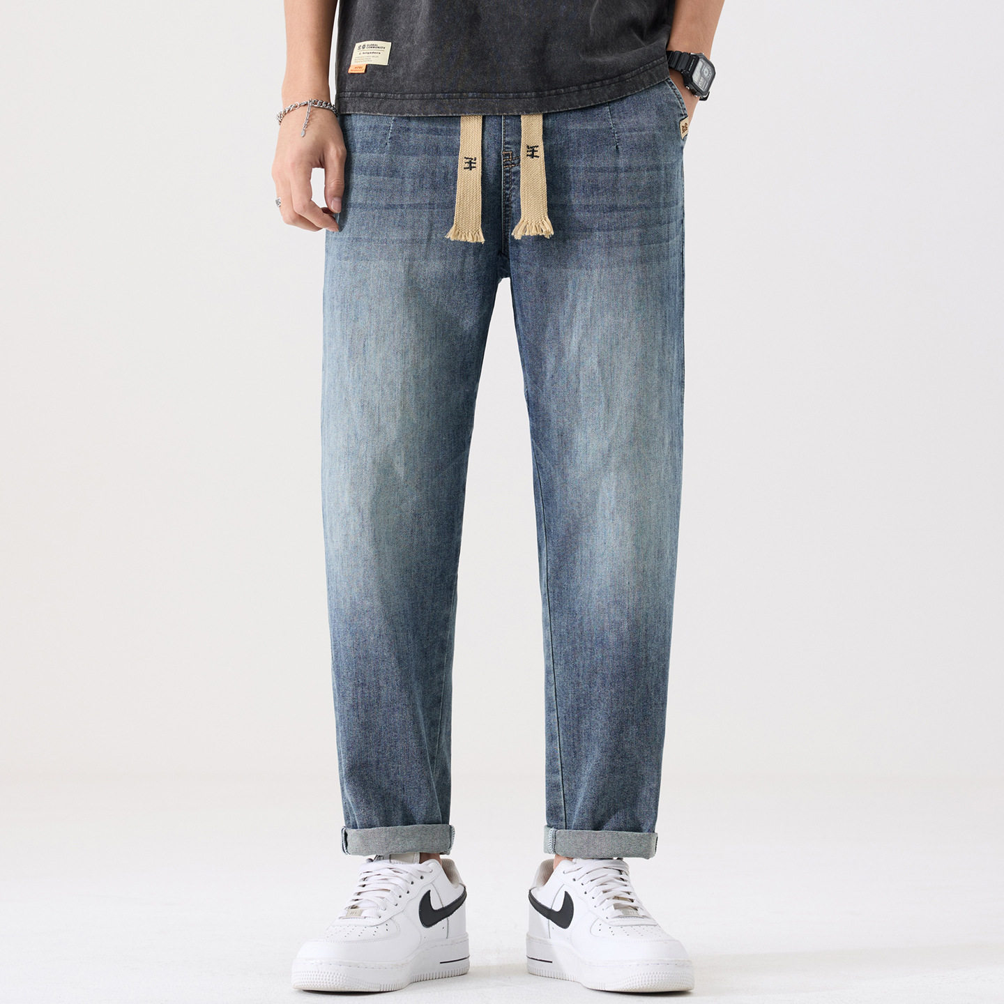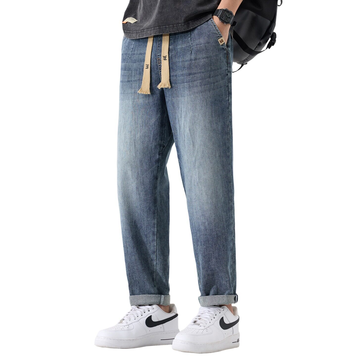 莱赛尔天丝胖子牛仔裤男夏松紧直筒大码男士锥形男裤男款抽绳裤子