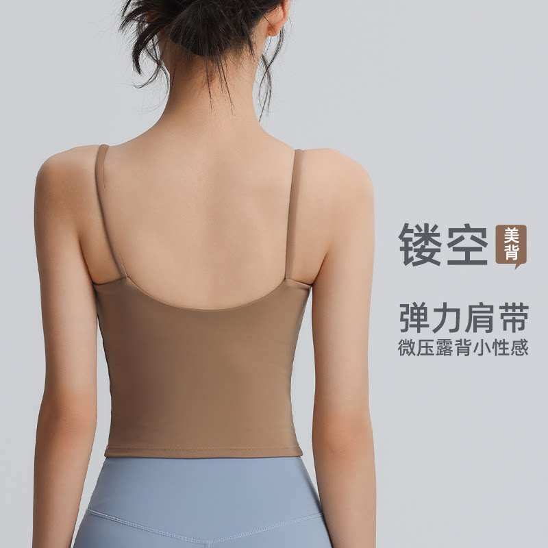 运动内衣瑜伽背心健身吊带美背女士跑步训练强度露肩上衣服饰