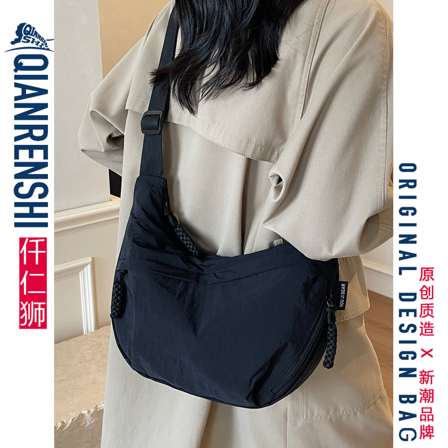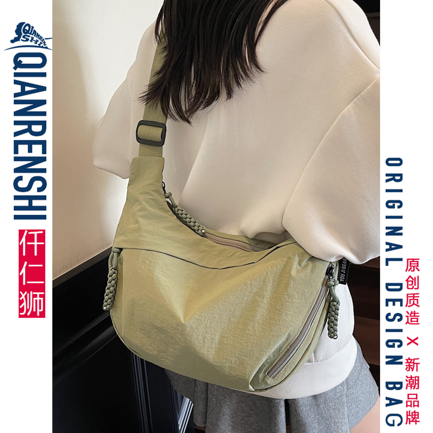 311线报网描述:大容量斜挎包女生日常上班通勤轻便饺子包包