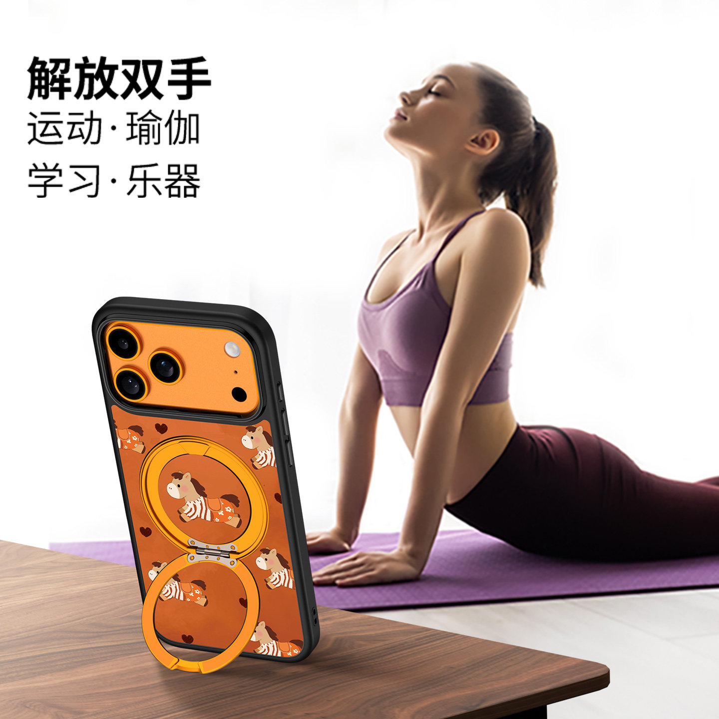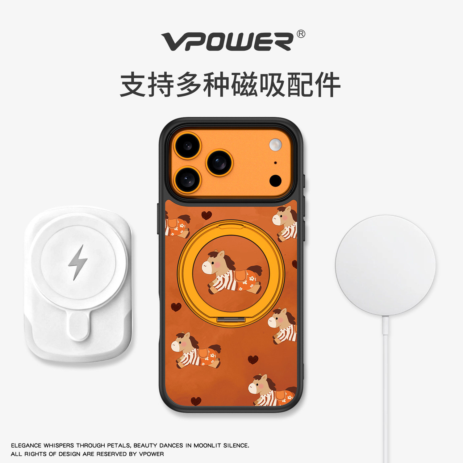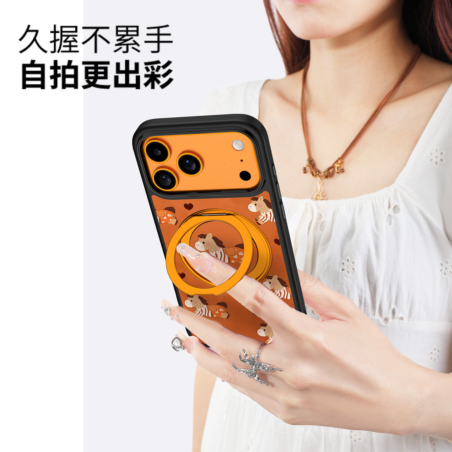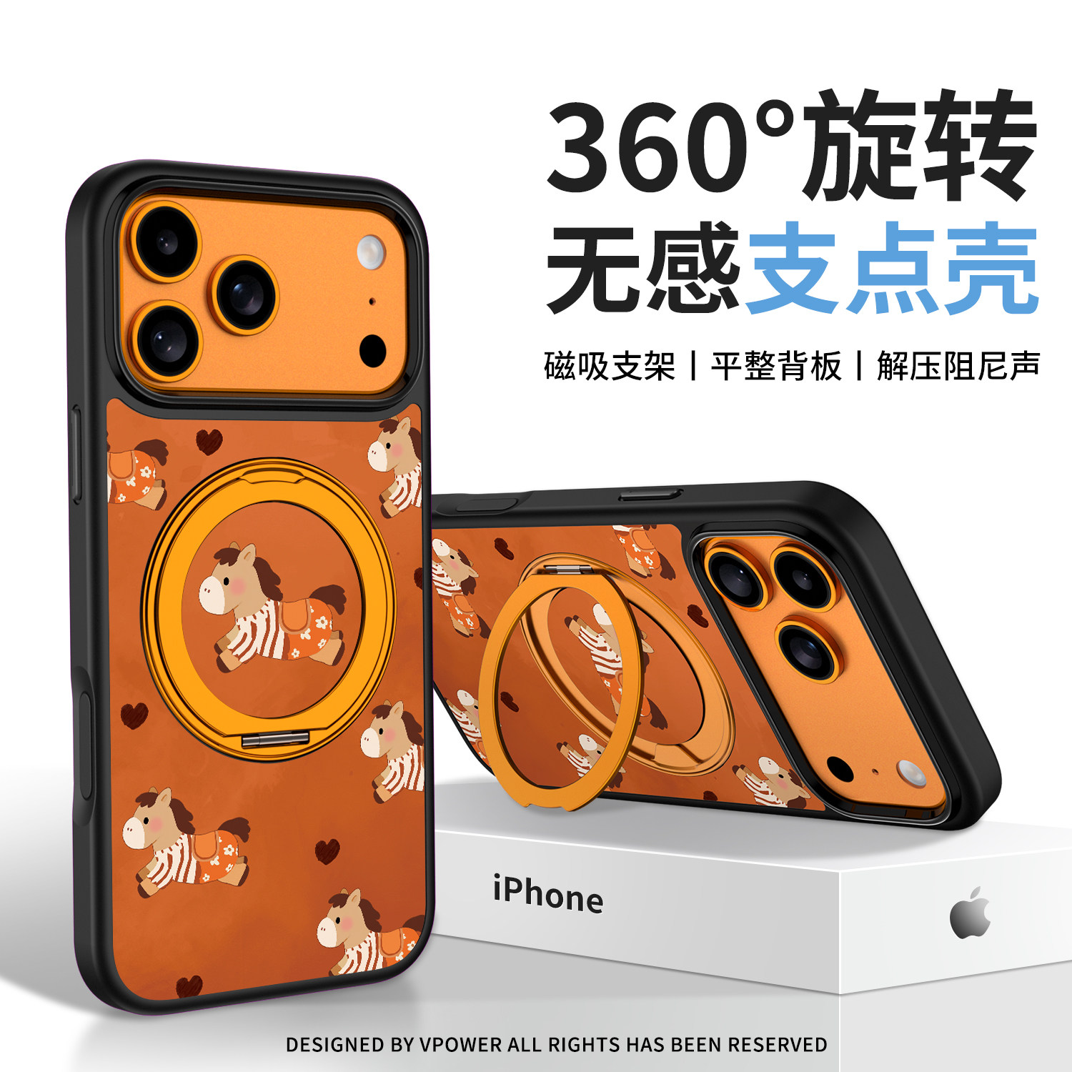 360旋转支架壳适用iPhone17Promax手机壳新款2026磁吸带支架苹果16Pro按键全包防摔套卡通ip15pm好看马年外壳