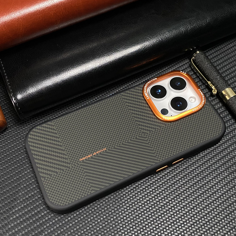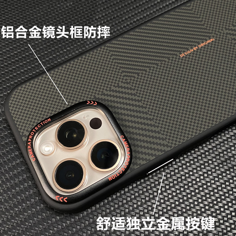 适用苹果16手机壳新款超薄凯夫拉硬壳金属镜框防摔iPhone15Promax高级感magsafe磁吸商务外壳男士14pro保护套