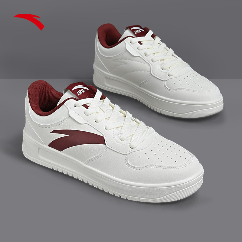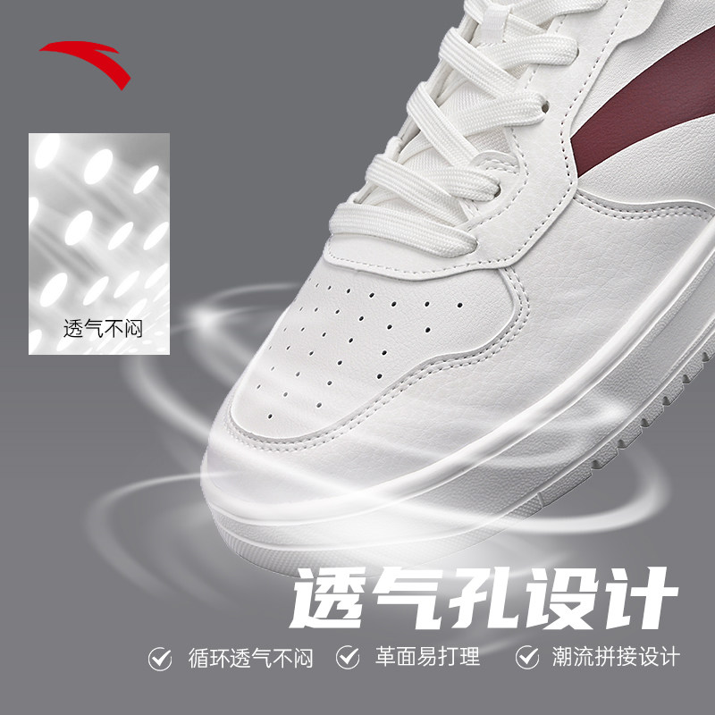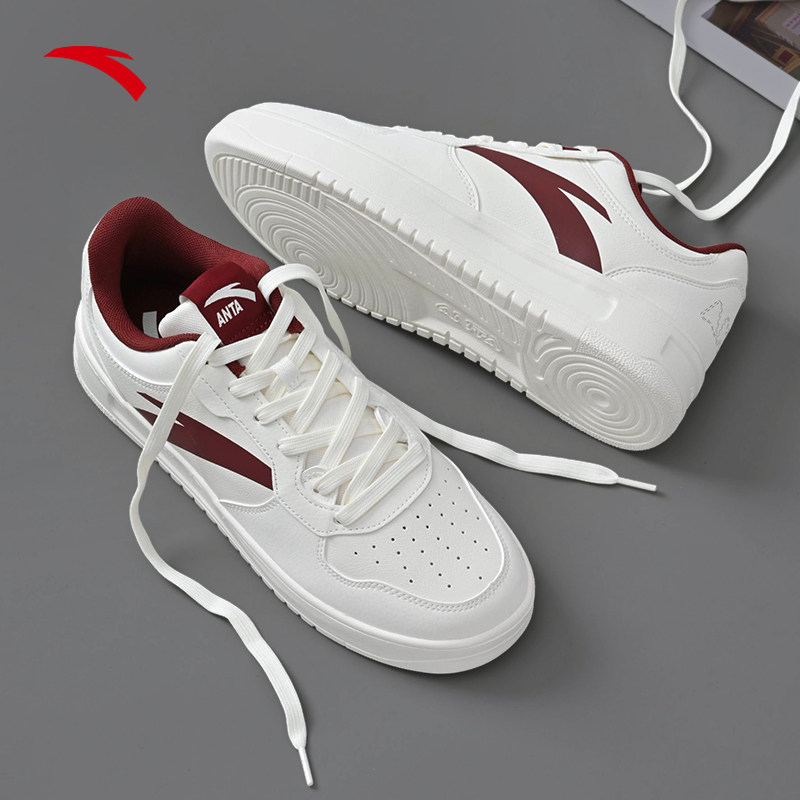 安踏板鞋男鞋男款2026夏季新款旗舰正品小白鞋皮面复古白红色板鞋