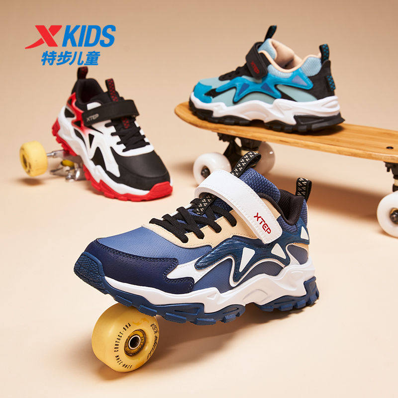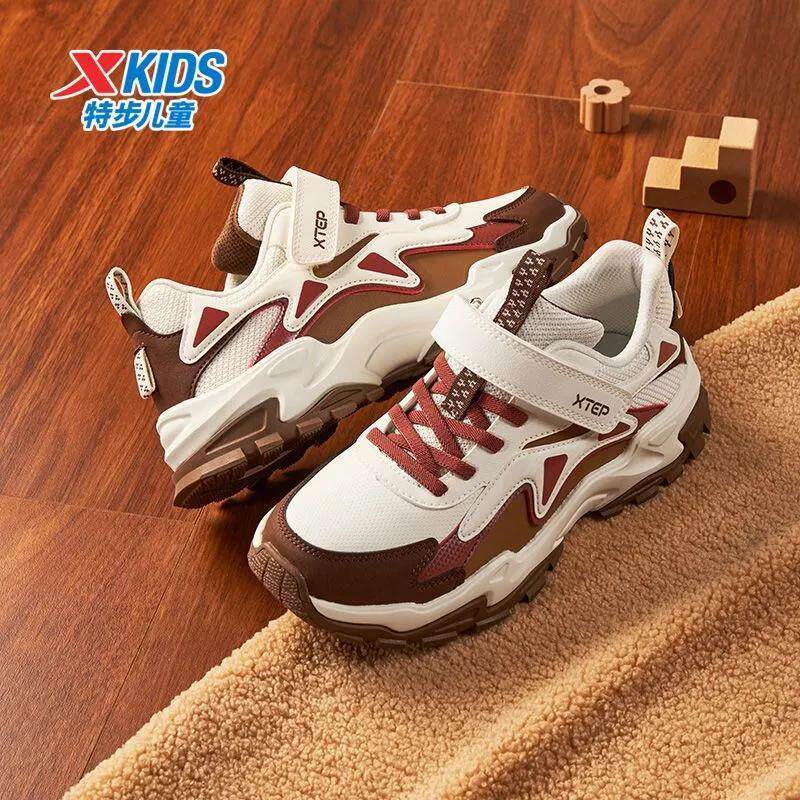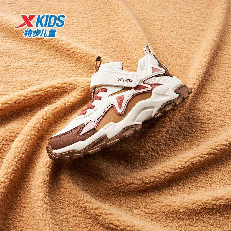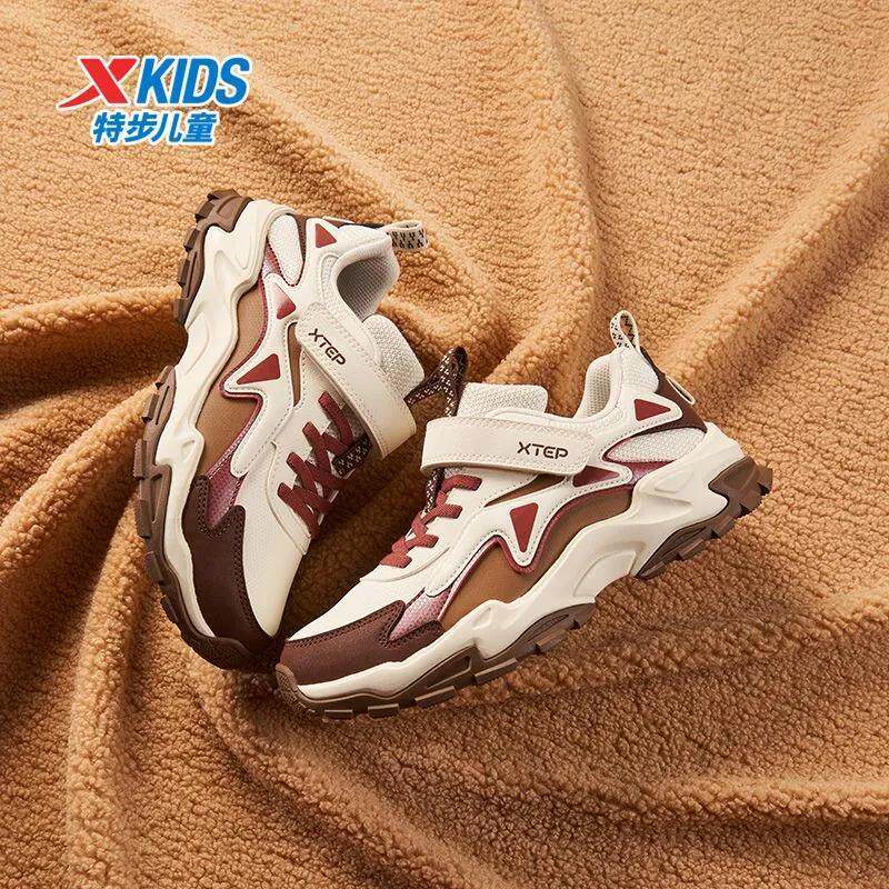 加绒暖脚丨特步童鞋运动鞋女童休闲鞋防滑耐磨魔术贴中大童舒适鞋