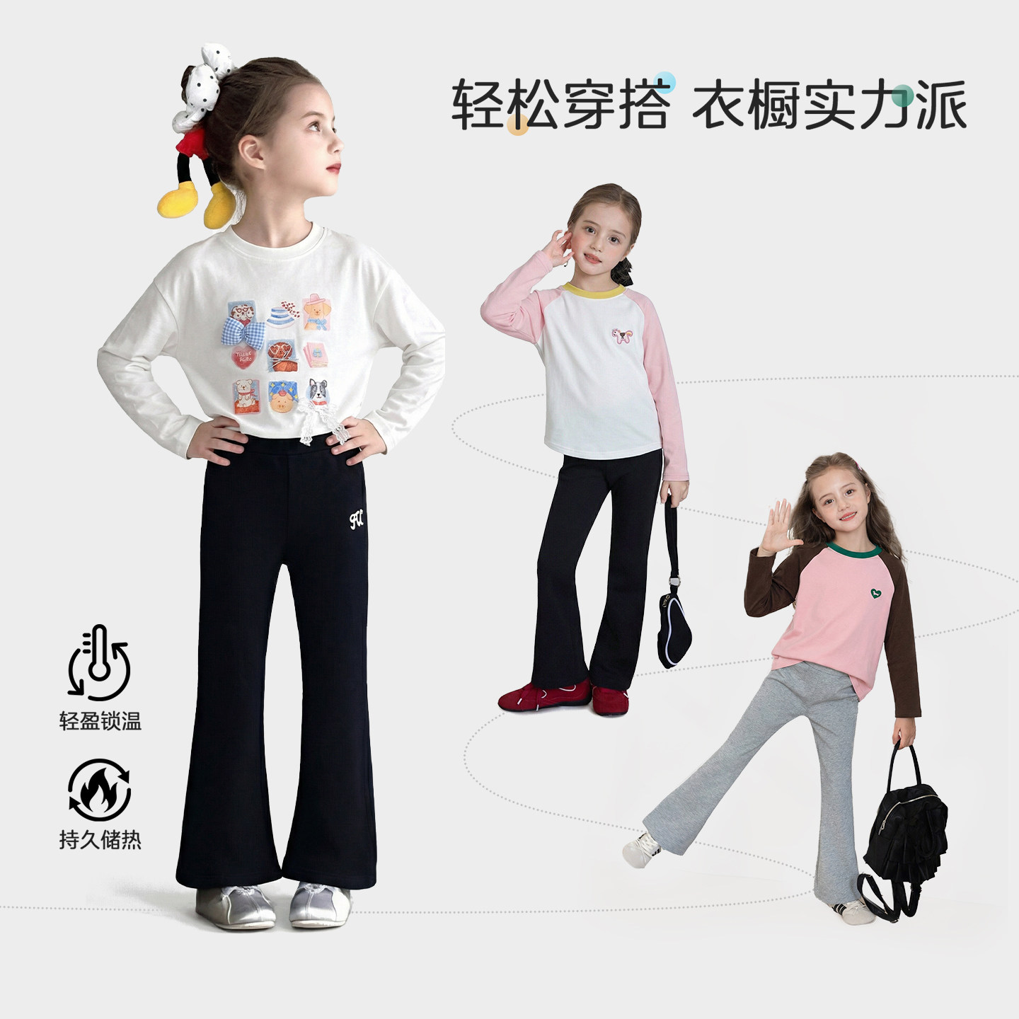 图图小象女童裤子春装喇叭裤2026春季新款儿童洋气微喇裤休闲长裤