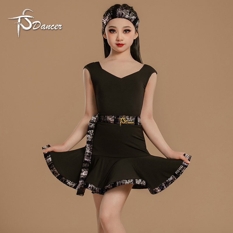 网红拉丁舞服新款2026女童练功服黑色舞蹈裙衣专业比赛规定服套装