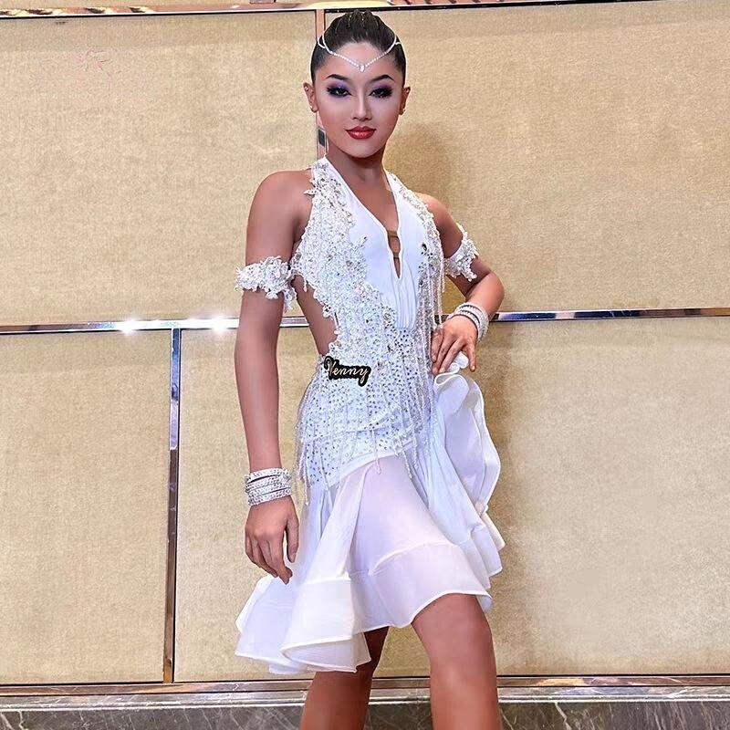 2025拉丁舞钻服露背挂脖高端设计感14岁以上比赛花服成人表演出裙