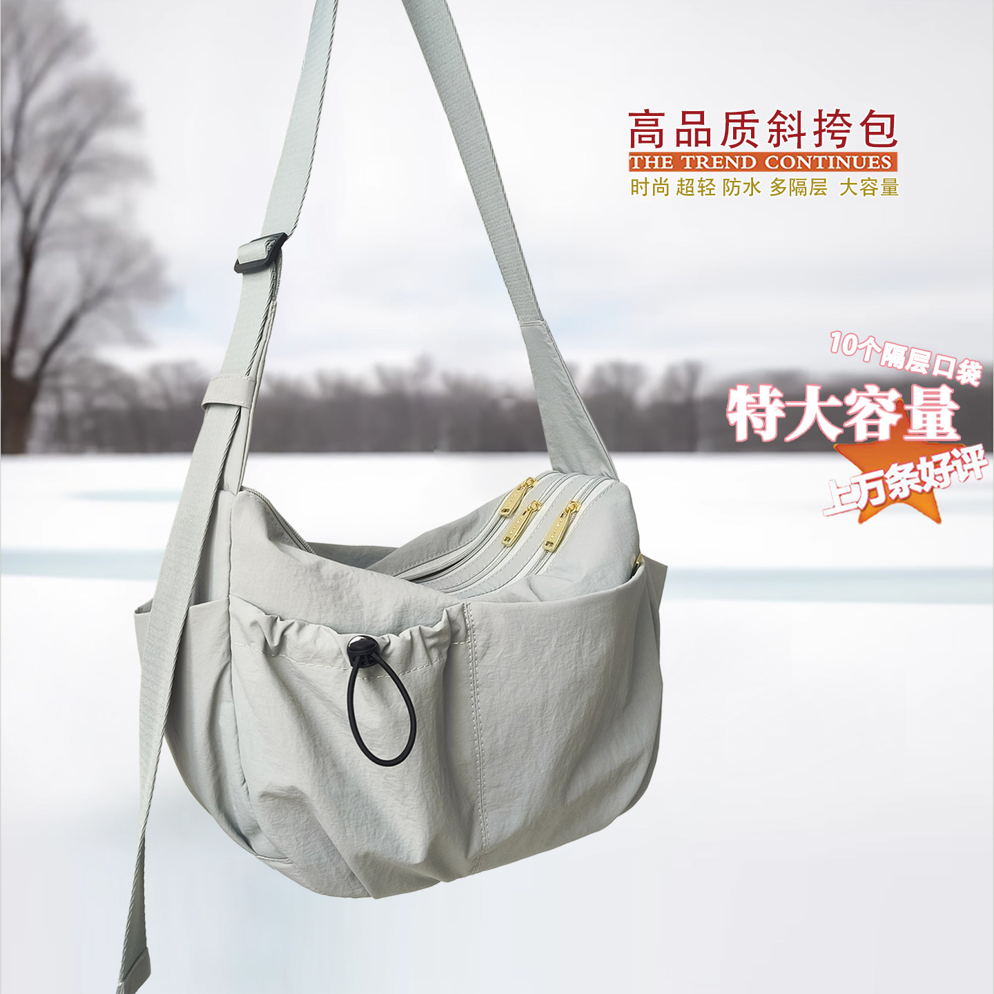 新款多口袋斜挎包女大容量2025旅行运动超轻便休闲通勤单肩饺子包