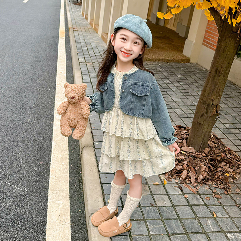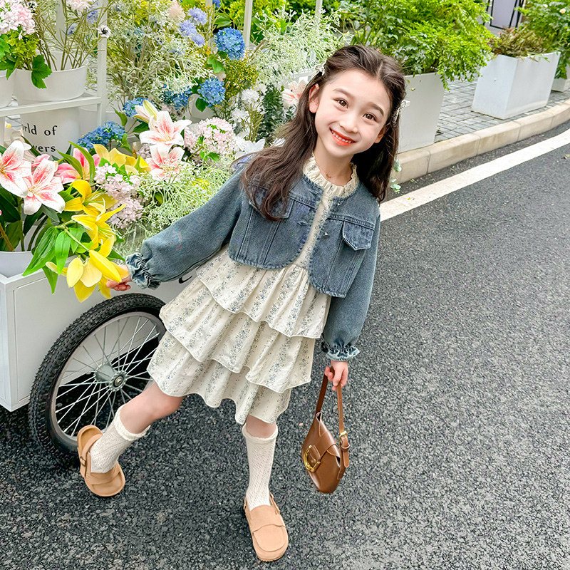 女童碎花裙子牛仔套装春秋款2026新款儿童洋气时髦小女孩春季春装