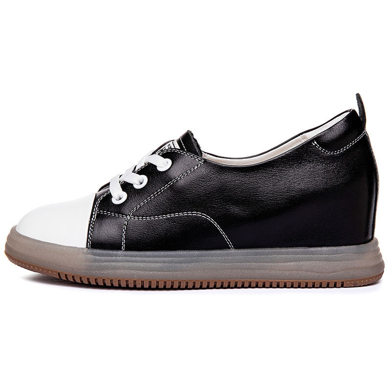 头层牛皮内增高小白鞋女真皮百搭厚底春秋单鞋休闲运动女鞋3334码