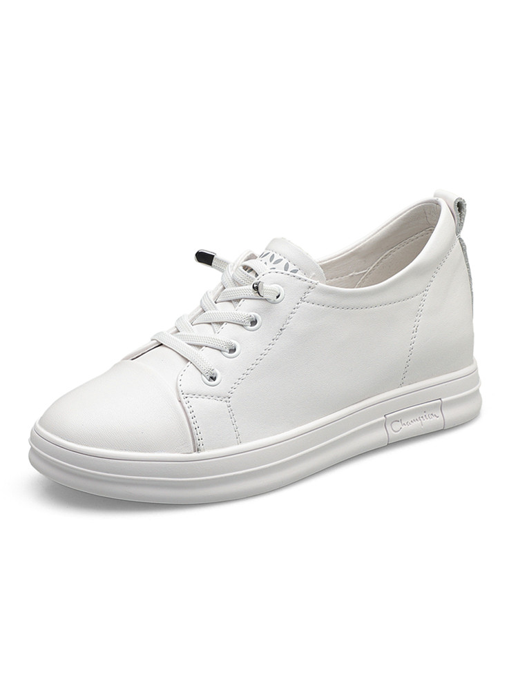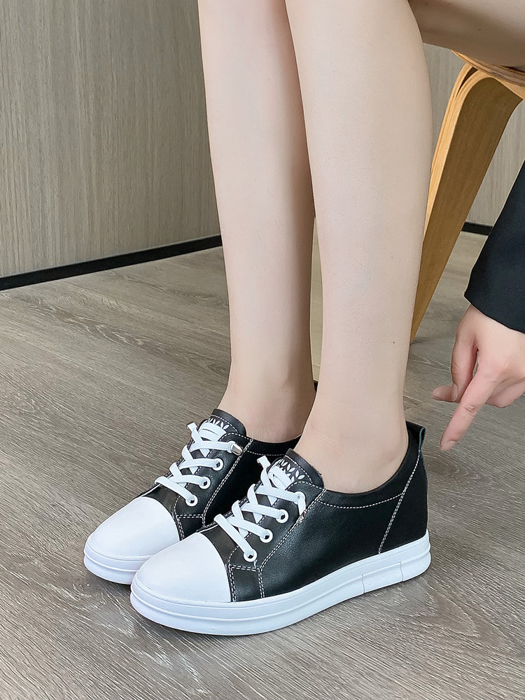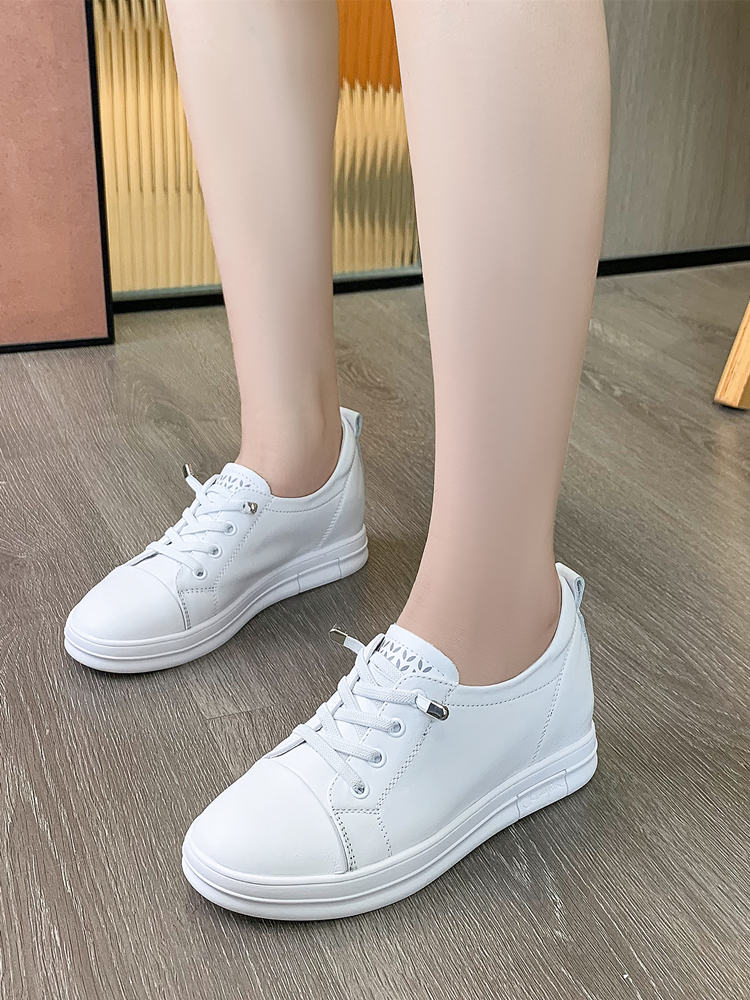 内增高小白鞋女真皮春秋透气坡跟百搭运动休闲鞋显瘦一脚蹬懒人鞋