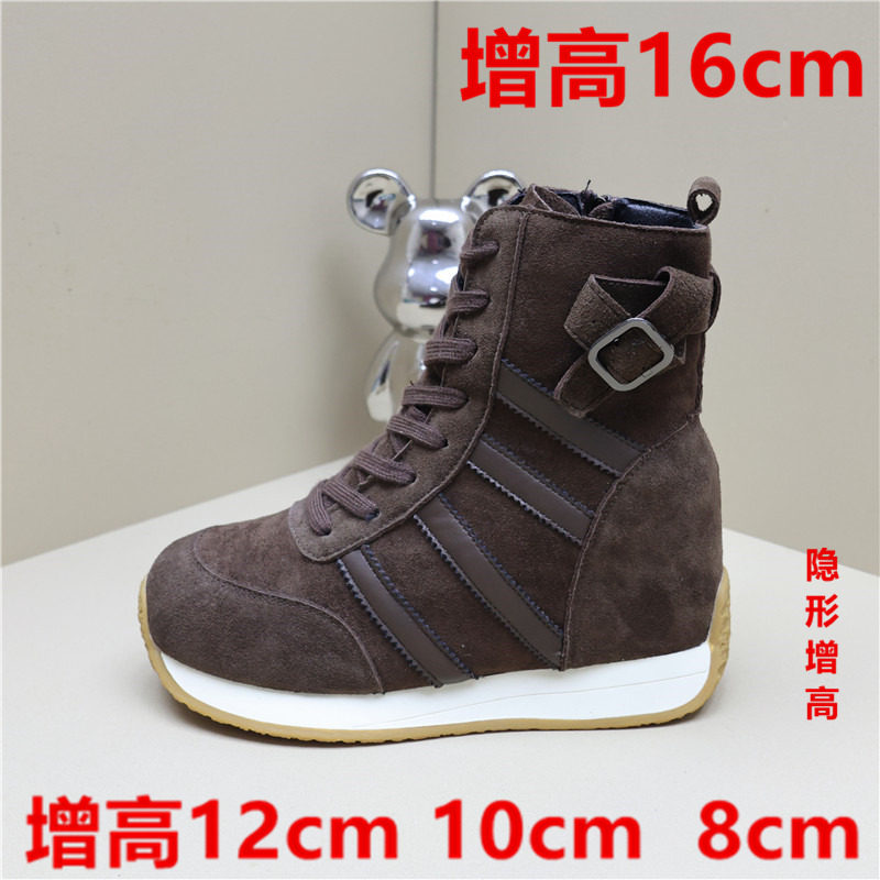 隐形增高12cm德训鞋女2025冬加绒小个子10cm休闲高帮棉鞋8cm短靴