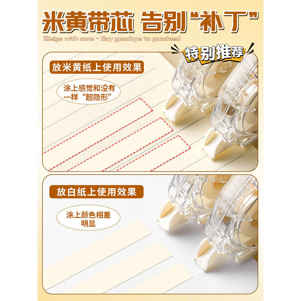 晨光米黄原纸色修正带小学生专用隐形无痕款高中生初中生专用涂改带改正带修正贴大容量改字修改带修正胶带