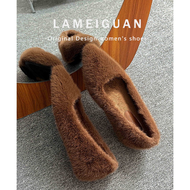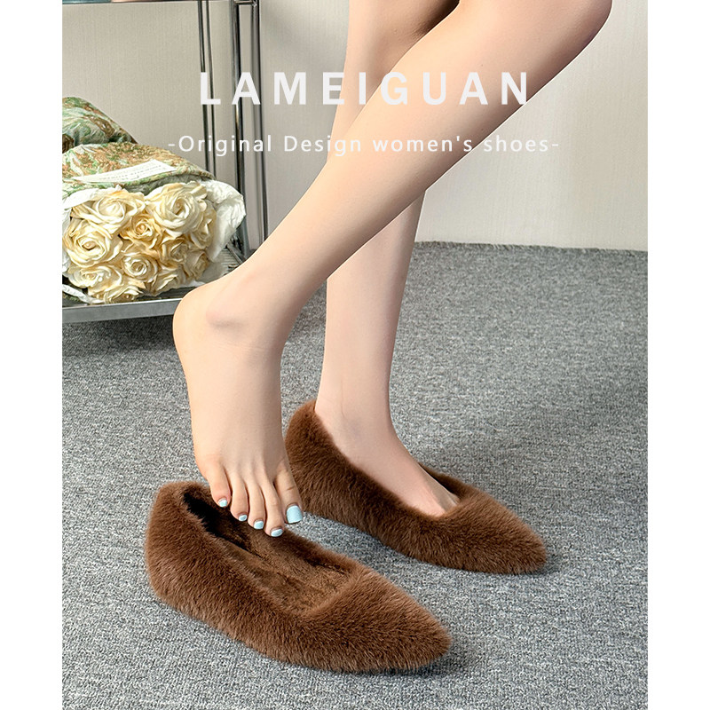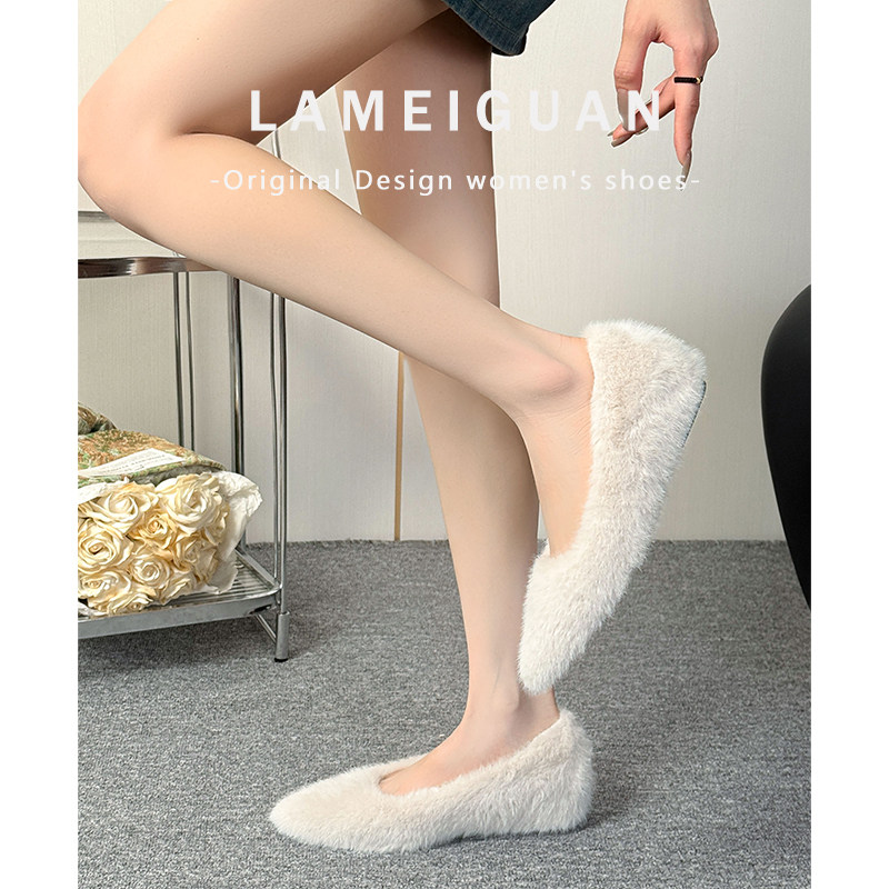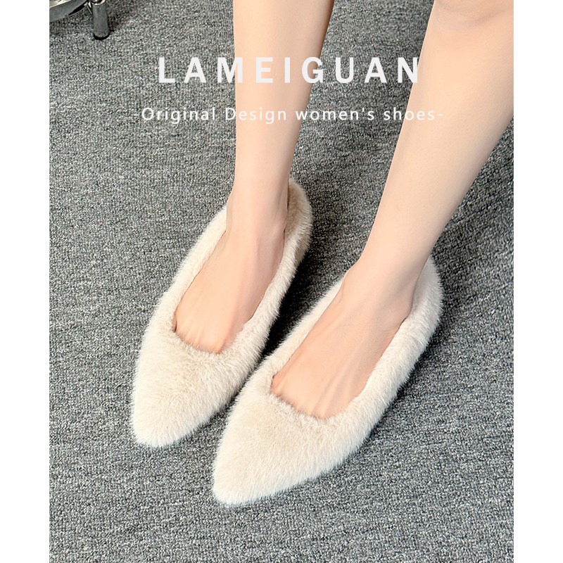 白色尖头毛毛小个子内增高单鞋女2025新款款法式浅口加绒保暖棉鞋