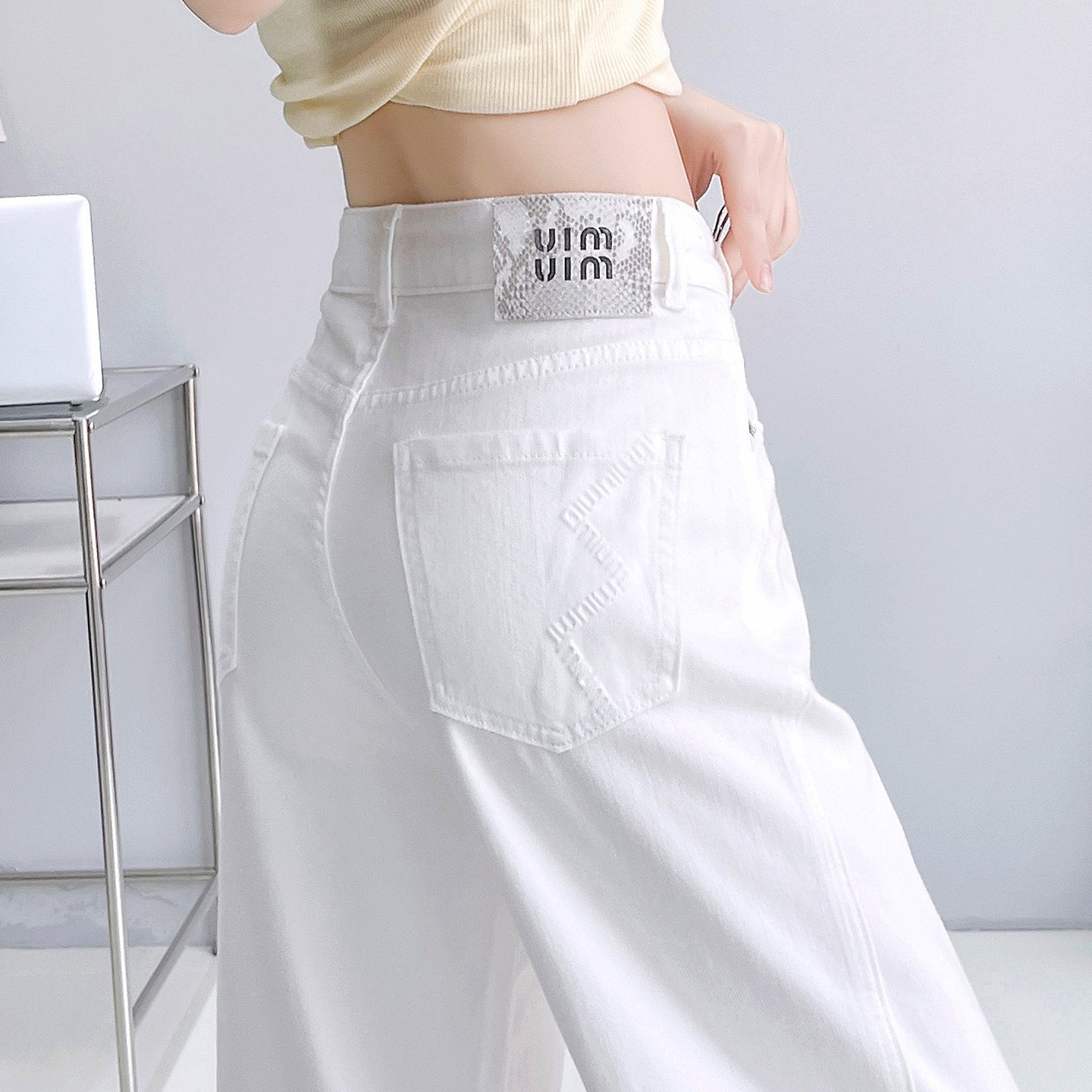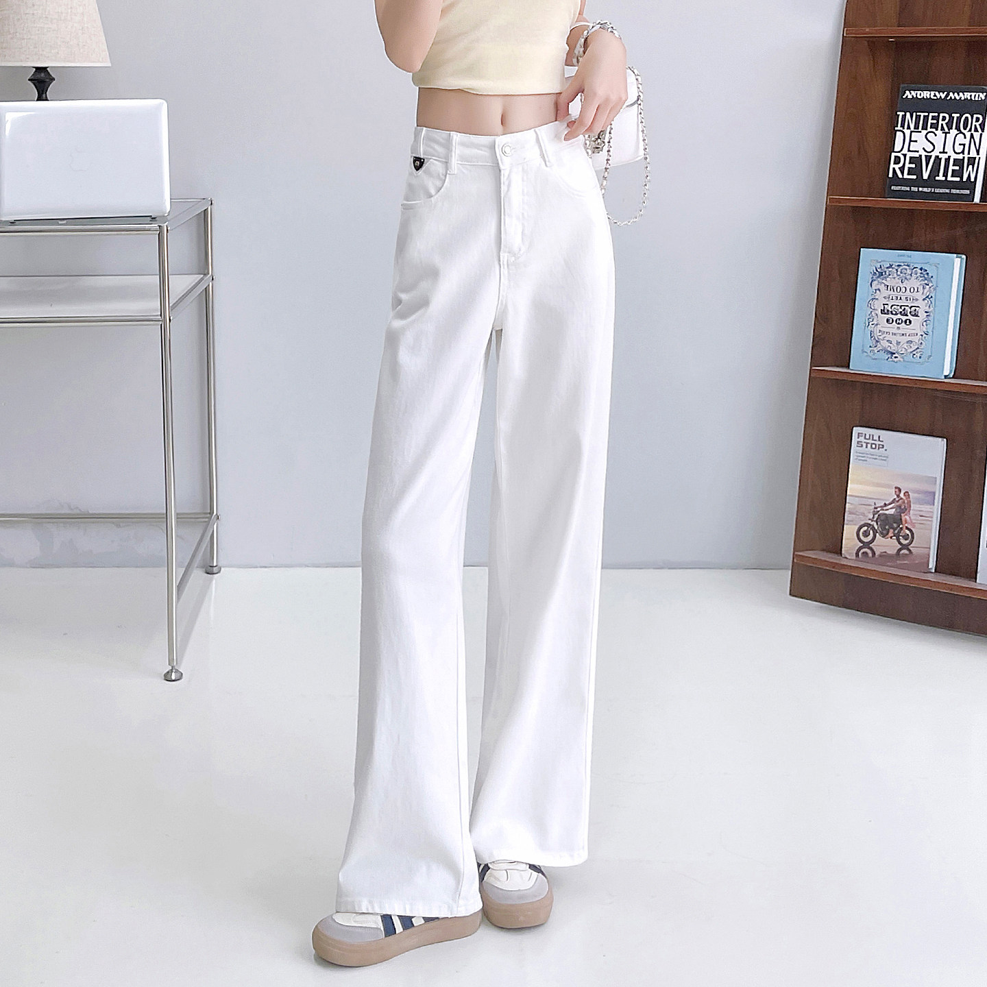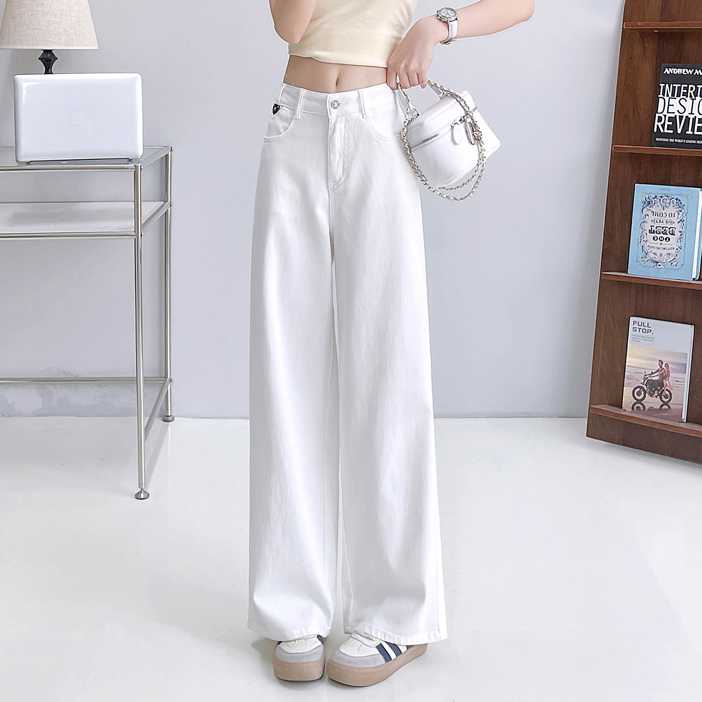 美式白色阔腿牛仔裤女2026夏季新款不贴腿窄版直筒拖地微喇叭长裤