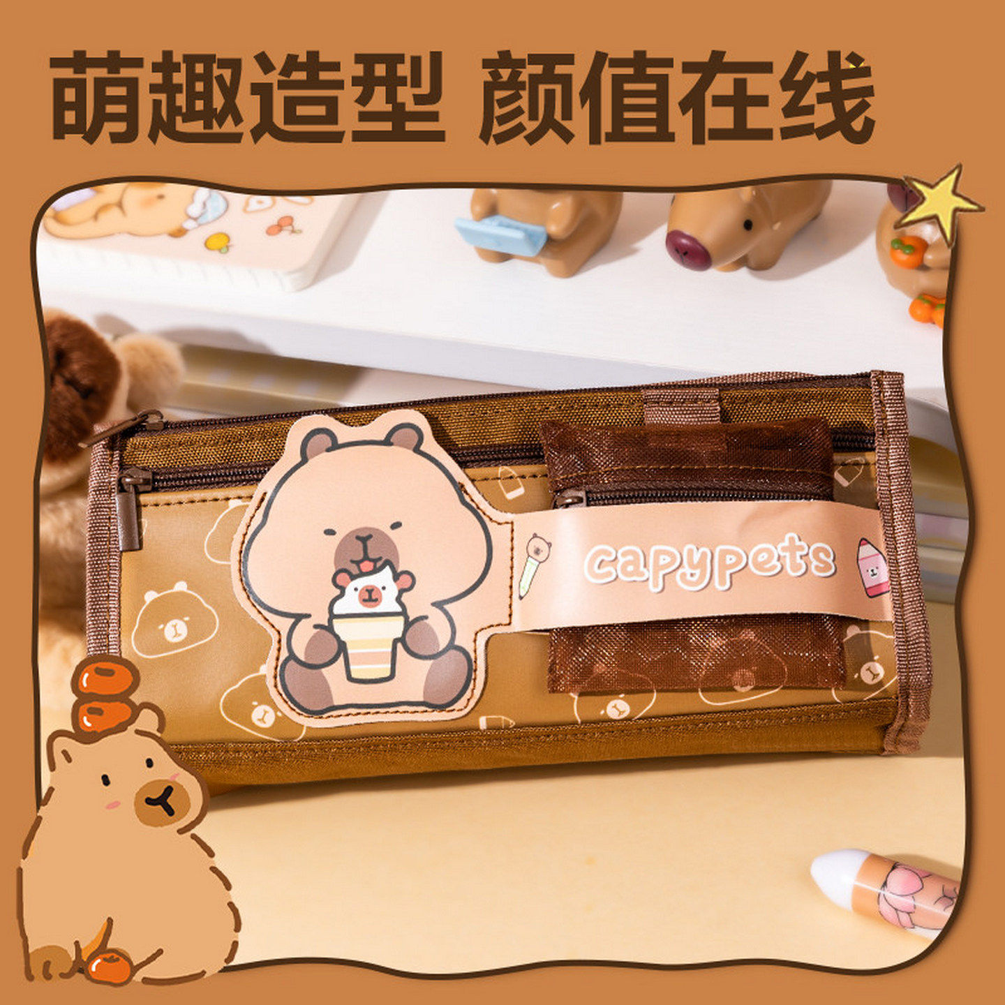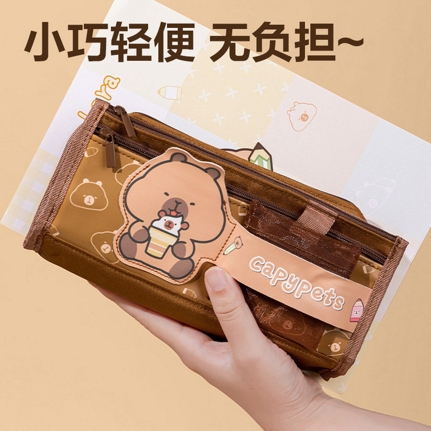 得力笔袋初中生高颜值文具盒男生女生2026新款大容量铅笔盒小学生铅笔袋卡皮巴拉熊猫款多功能收纳复合文具袋