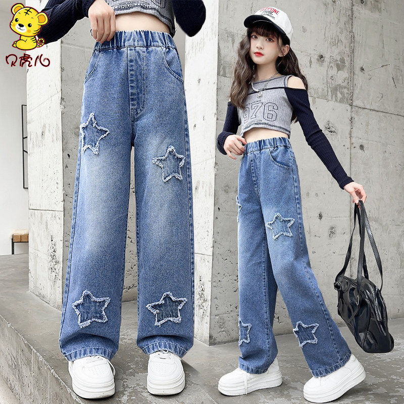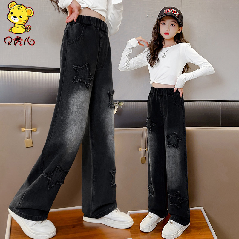 女童裤子春秋外穿2026新款中大童直筒阔腿长裤女孩春季儿童牛仔裤