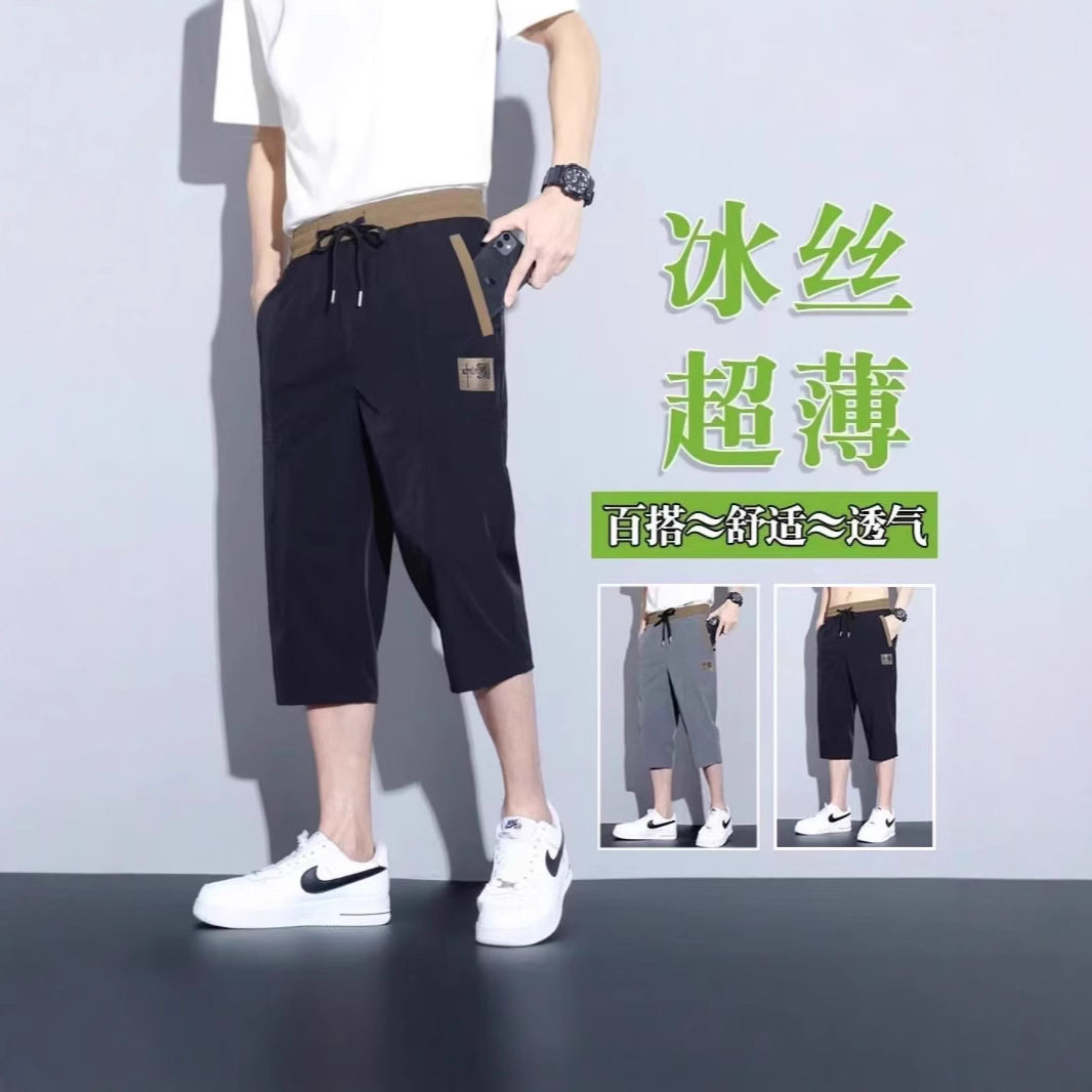 冰丝七分裤子男士夏季薄款潮牌宽松速干短裤外穿中裤男款运动休闲