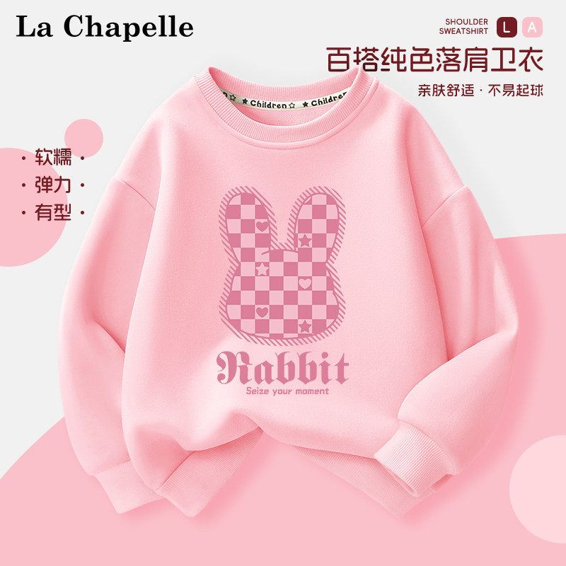 拉夏贝尔女童圆领卫衣2026新款儿童春装内搭长袖女孩打底上衣春季