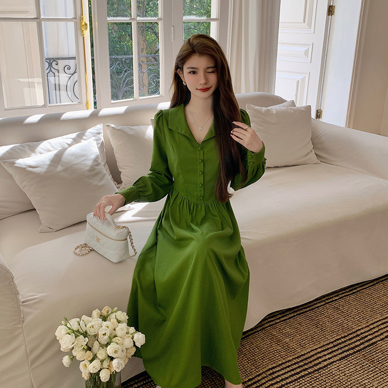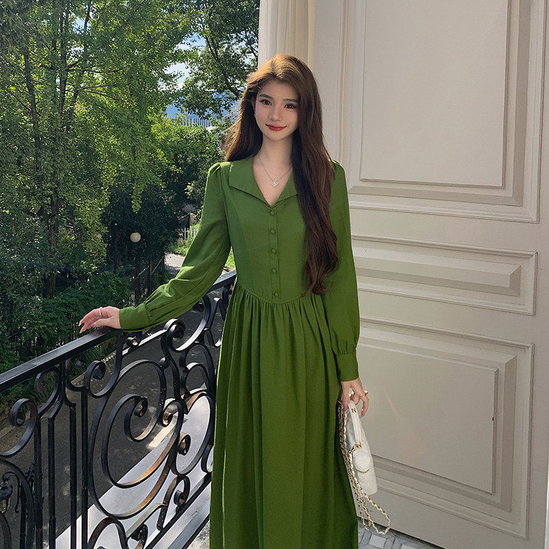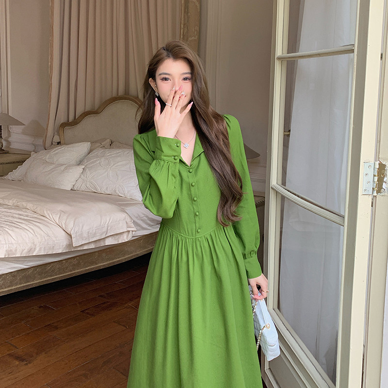 AM NANA秋冬法式气质打底长袖连衣裙初恋小个子收腰绝美V领长裙子