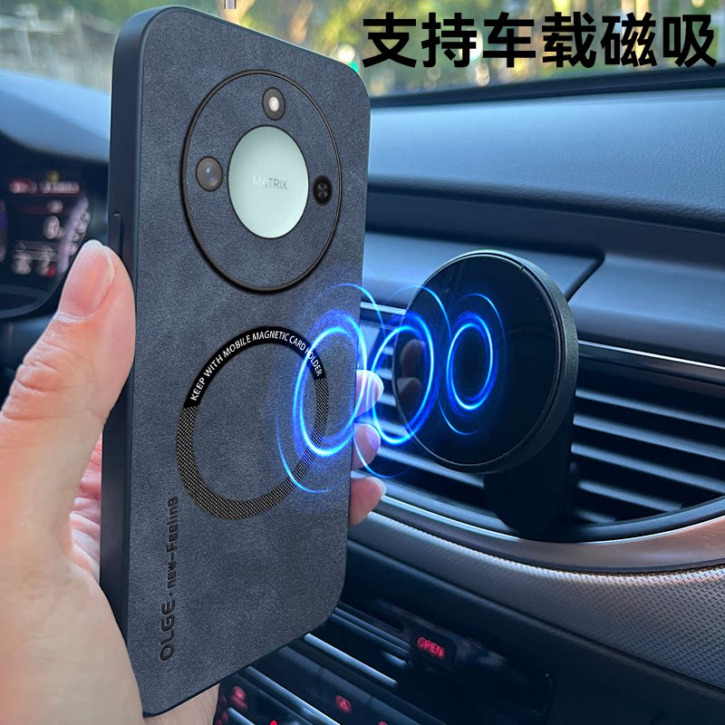 荣耀X60手机壳车载磁吸新款超薄羊巴皮软壳适用于HONORX60Pro高级感奢华时尚创意全包防摔简约个性商务保护套