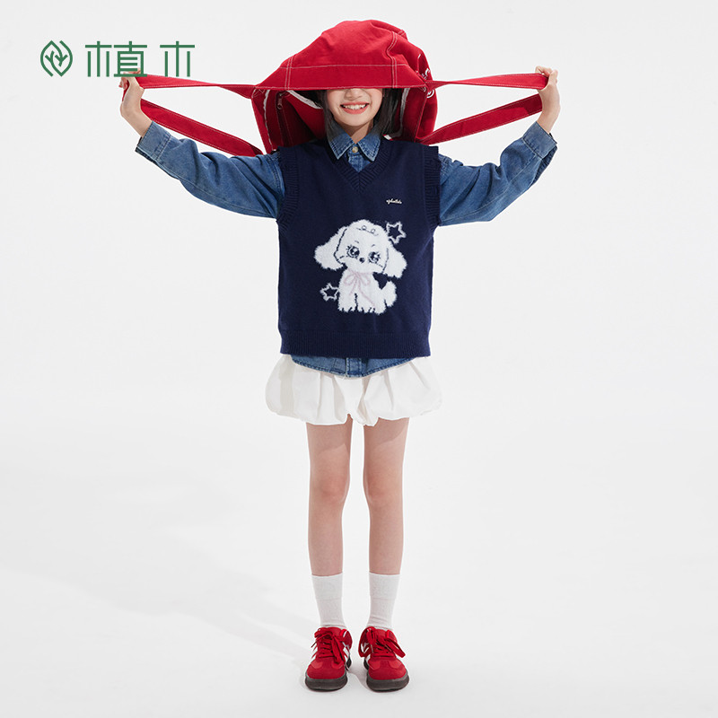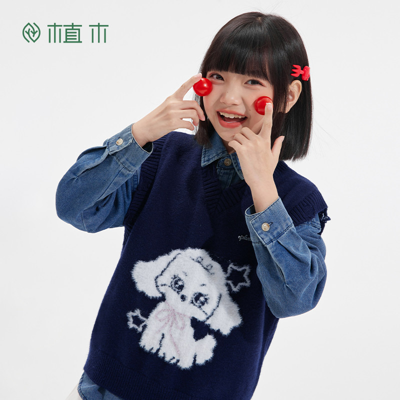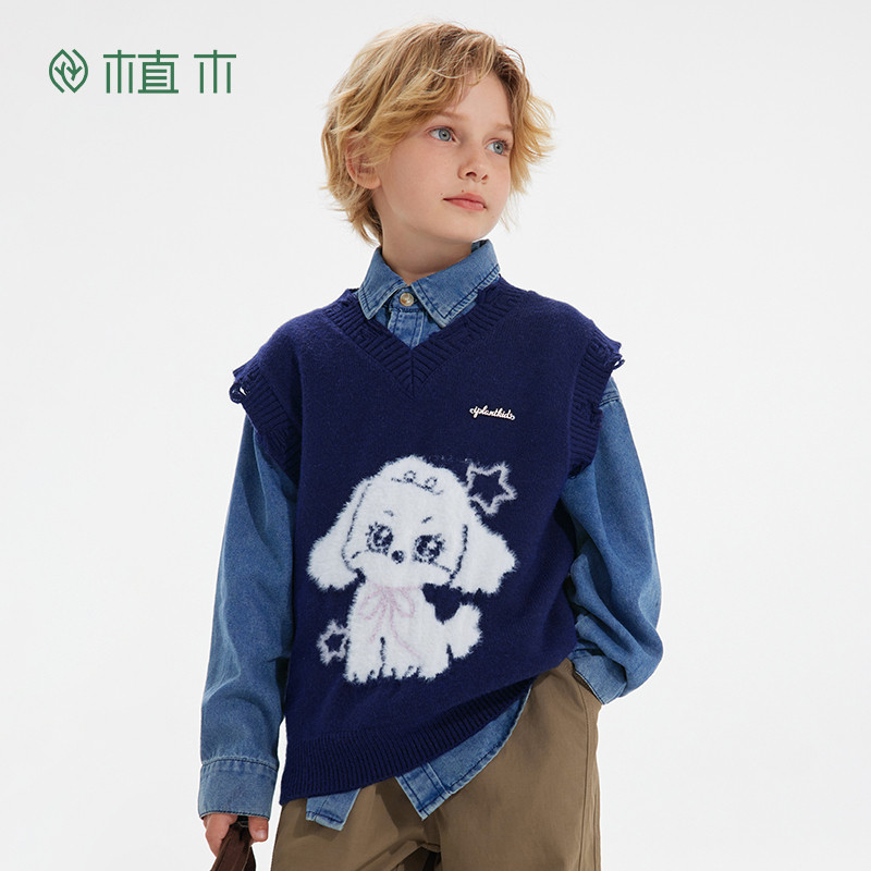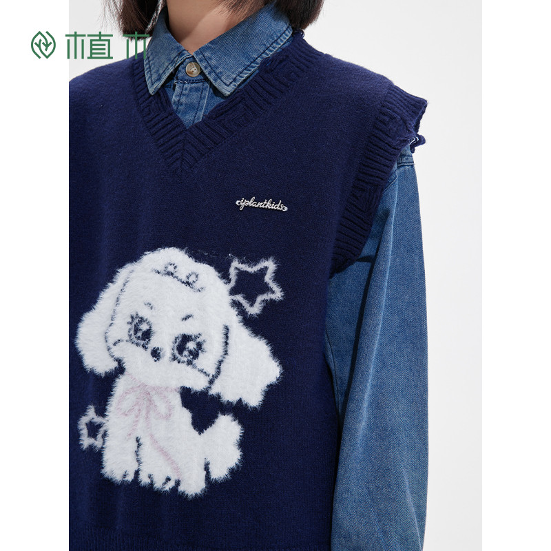 311线报网描述:男童 做旧毛边狗狗提花V领针织毛衣马甲