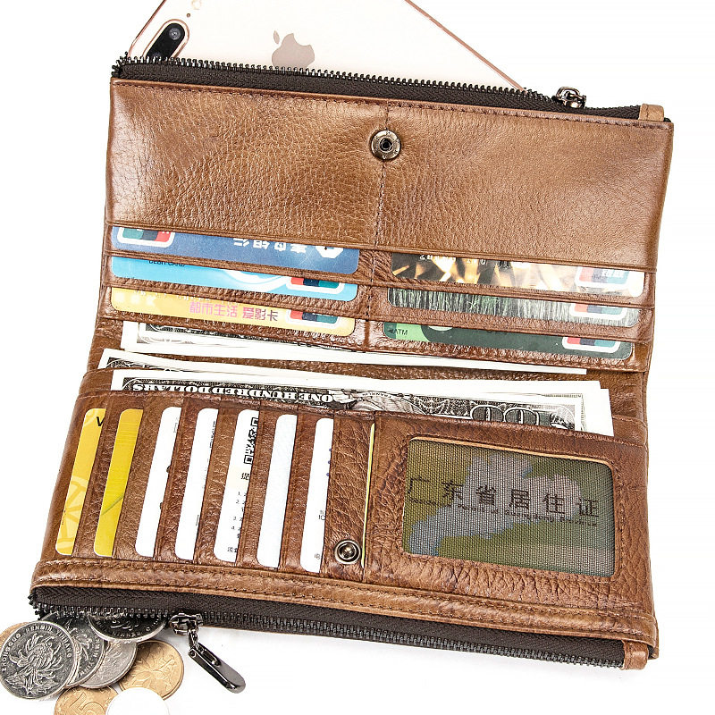 2020新款真皮钱包男长款复古牛皮多卡位皮夹大容量手拿女钱包卡包