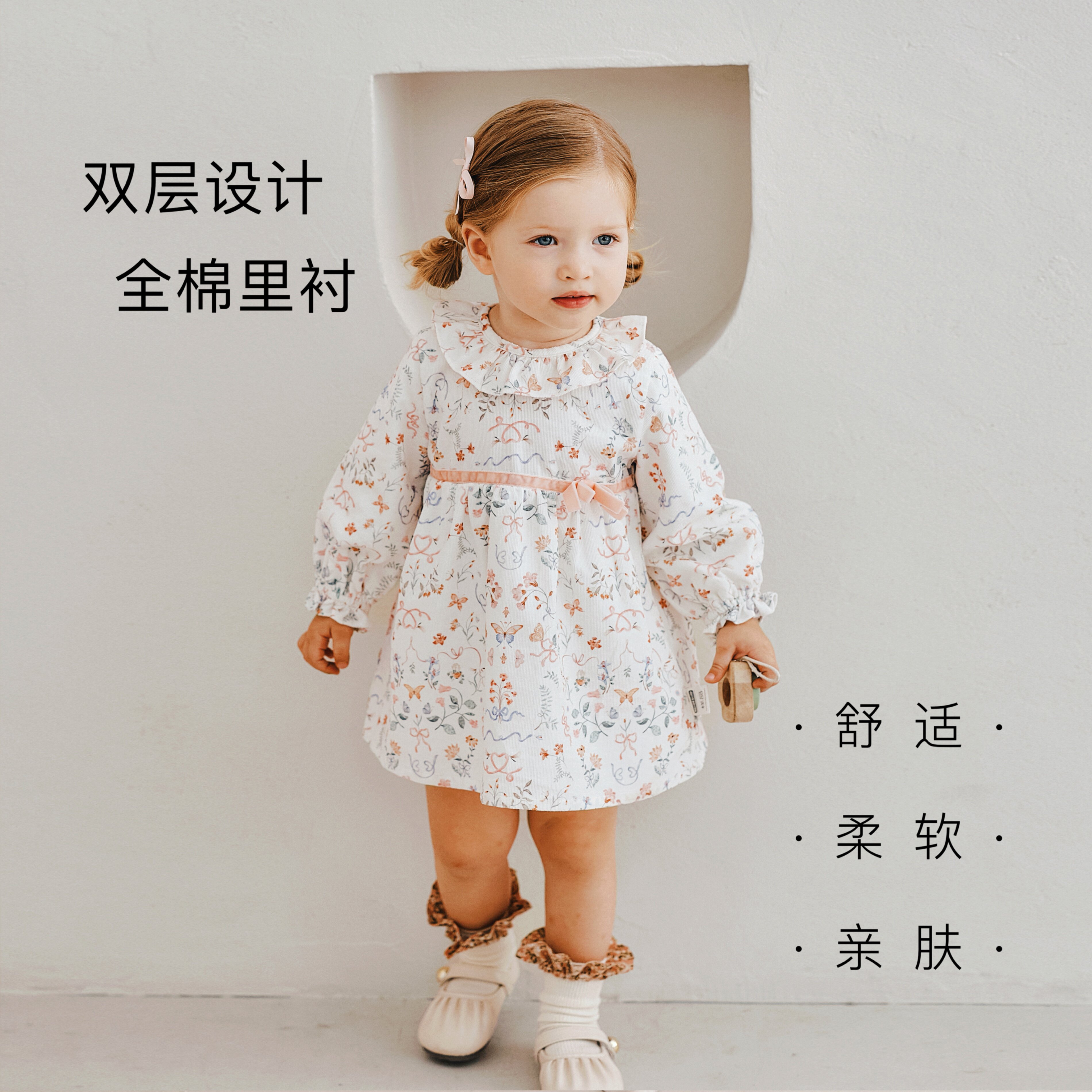 Elk Zoo女童连衣裙早春装新款女宝宝礼服纯棉长袖外出公主裙子