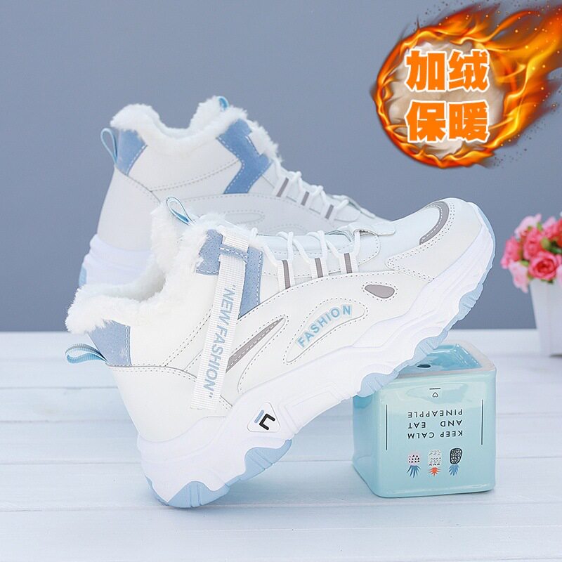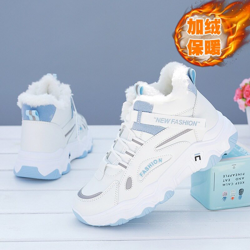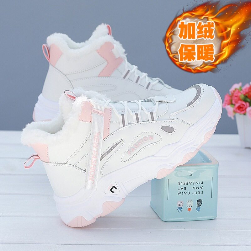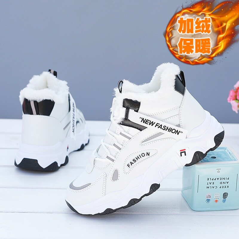正品老爹鞋女款冬季运动女鞋子高初中学生加绒防滑保暖东北大棉鞋
