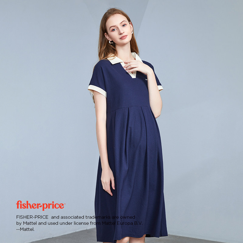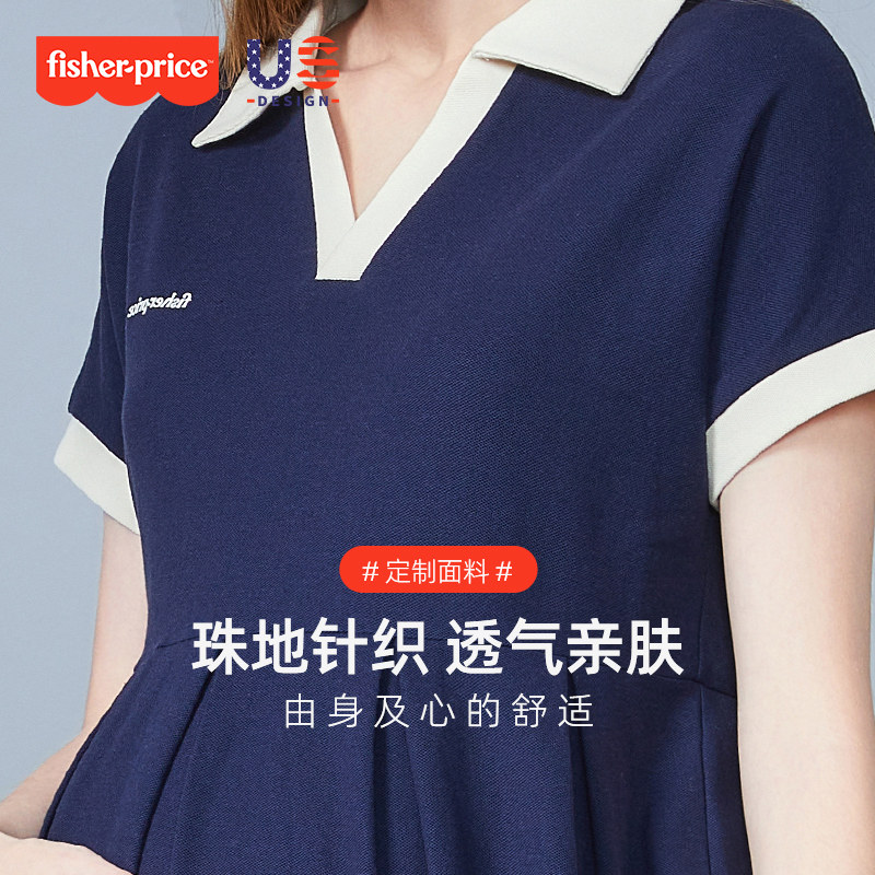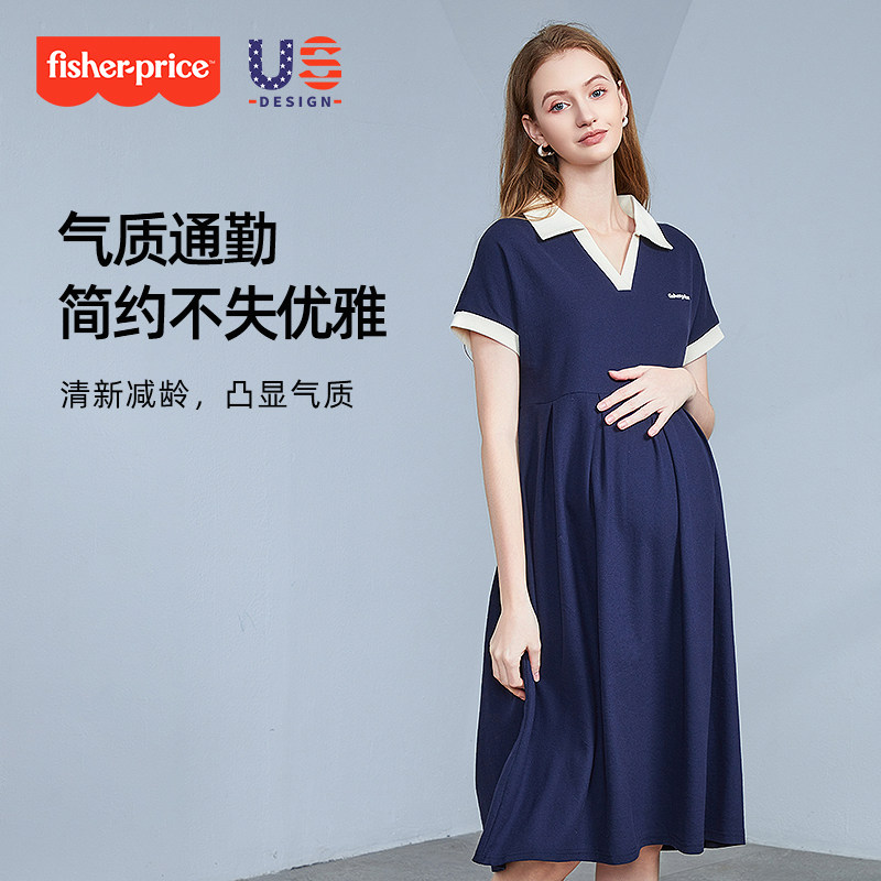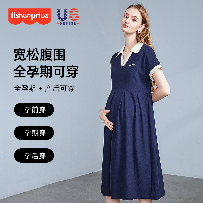 美国费雪孕妇连衣裙夏季小个子时尚短袖t恤夏装V领中长裙子女夏装