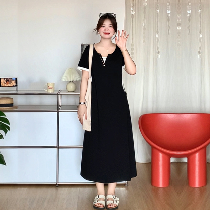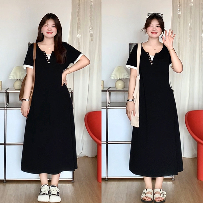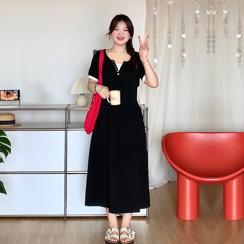 微胖的喵喵大码女装胖mm夏天巨好看的裙子显瘦遮肉短袖连衣裙2094