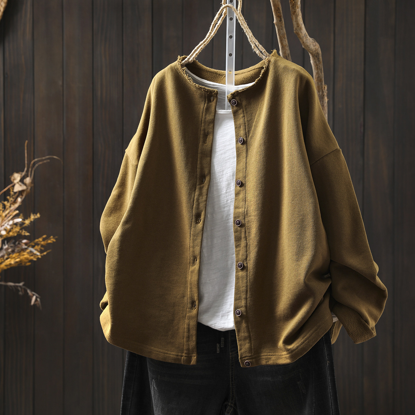 春装外套女款2026纯棉毛圈宽松休闲复古短款入秋轻薄外搭开衫上衣