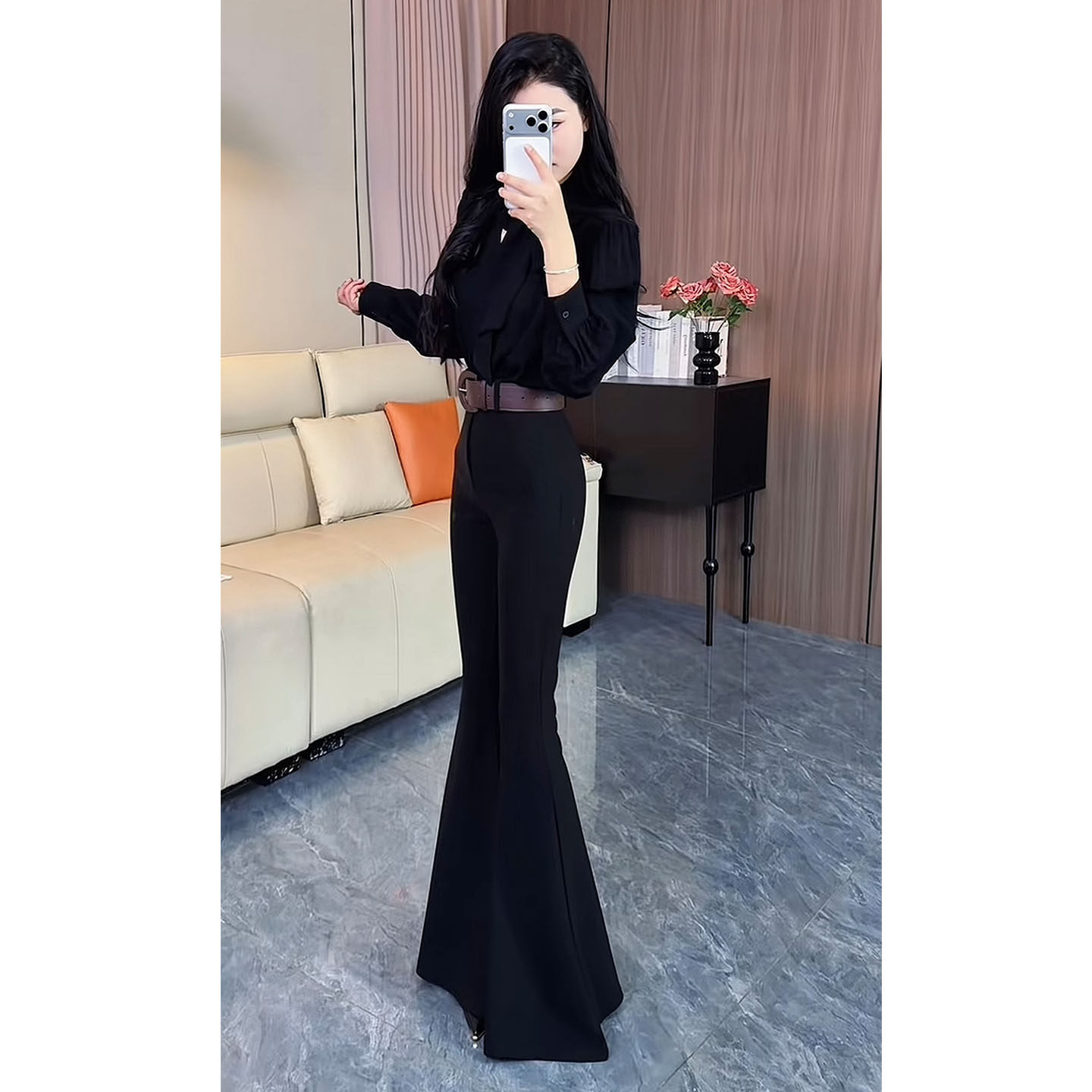 喇叭裤女款春季修身显瘦2026新款高腰人鱼裤减龄洋气弹力休闲裤子