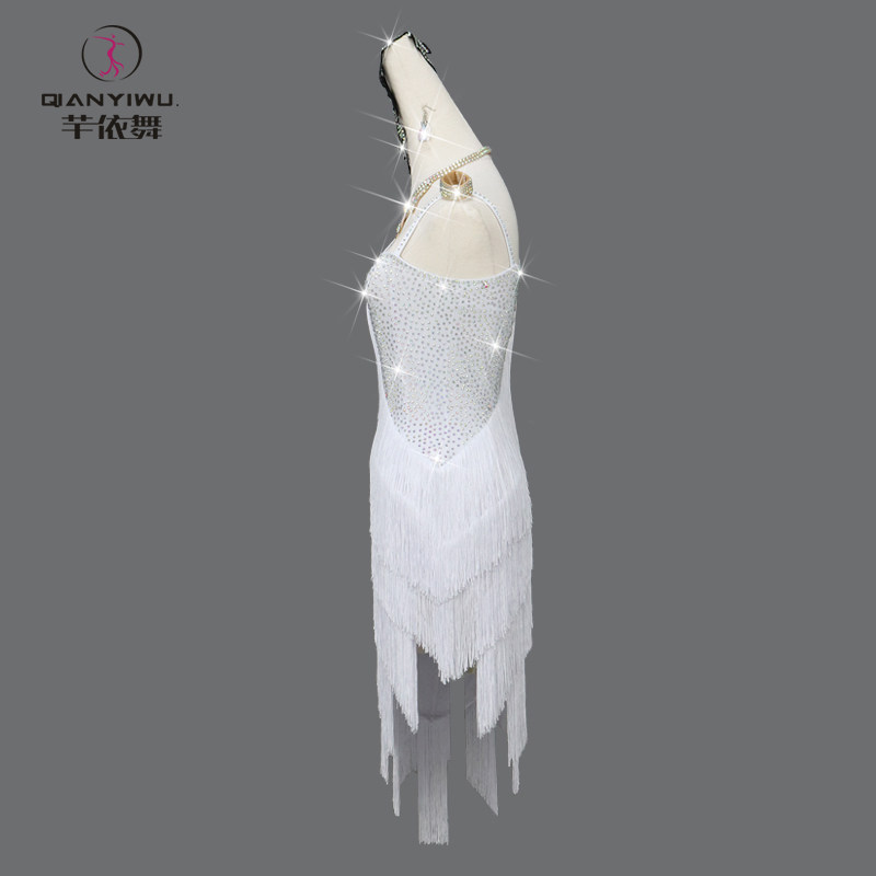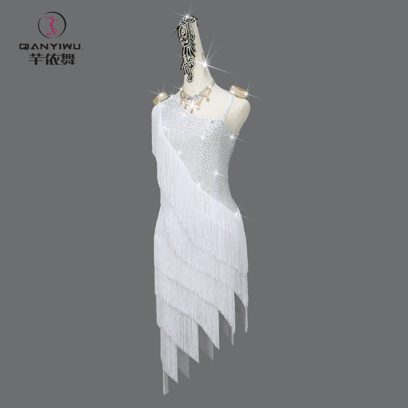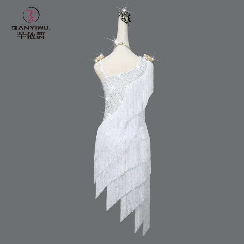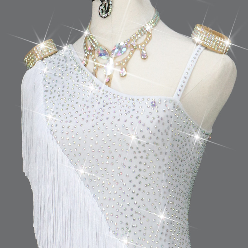2026新款专业白色拉丁舞比赛表演出服装伦巴舞蹈台花服流苏连衣裙