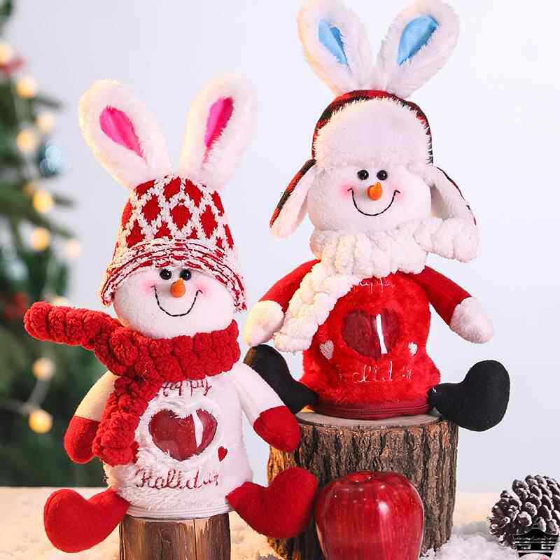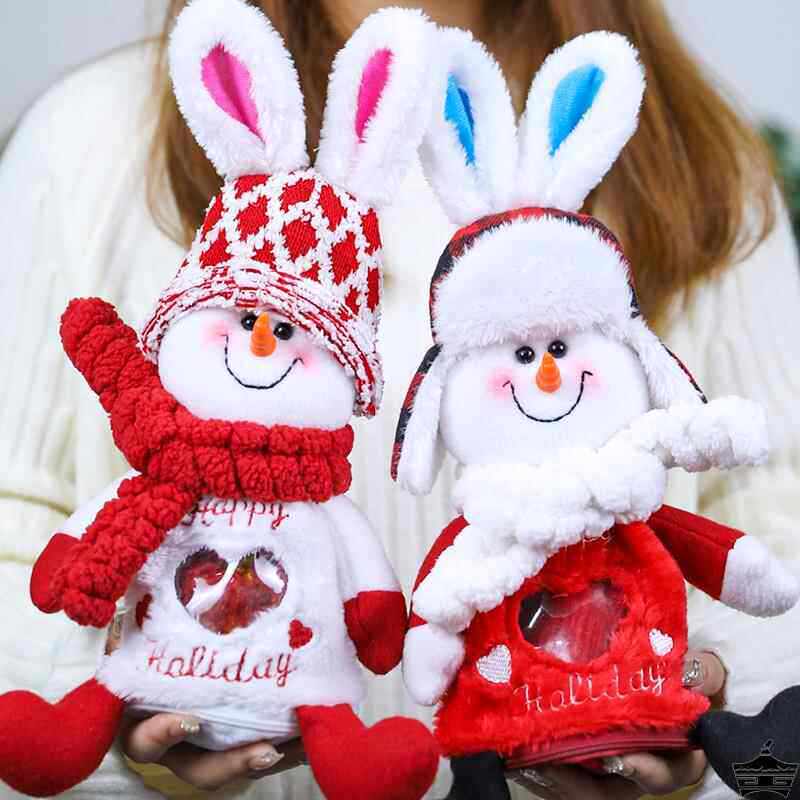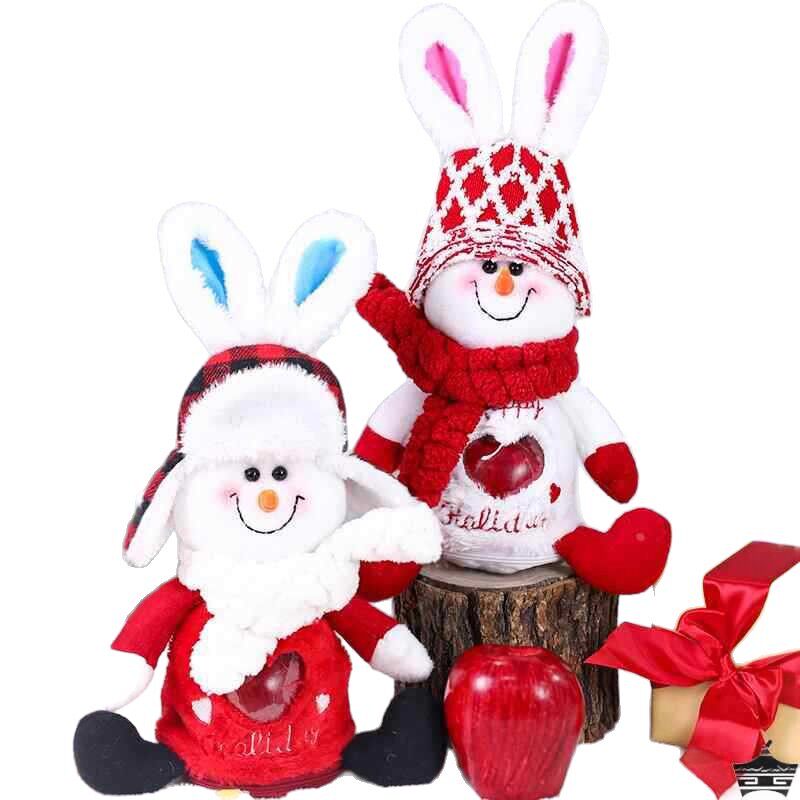 圣诞节可爱拉耳兔子雪人毛绒苹果袋玩偶公仔摆件装饰礼物袋创意平安夜送儿童女朋友糖果零食包装袋惊喜大礼包