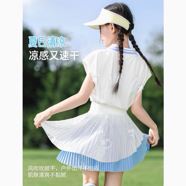 女童速干半身裙子儿童运动冰丝薄款羽毛球训练短裙女大童网球裙裤