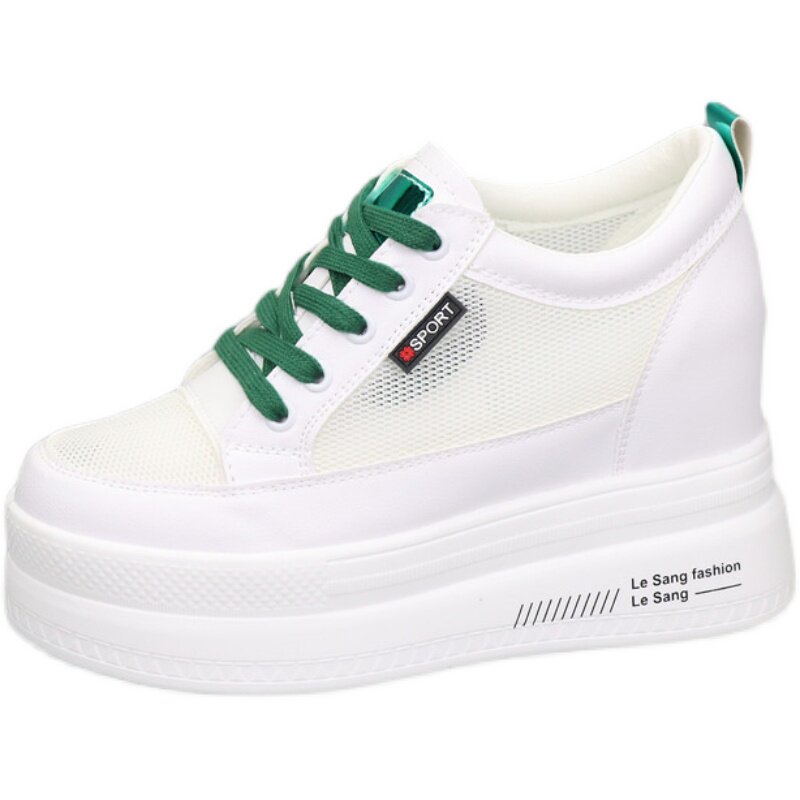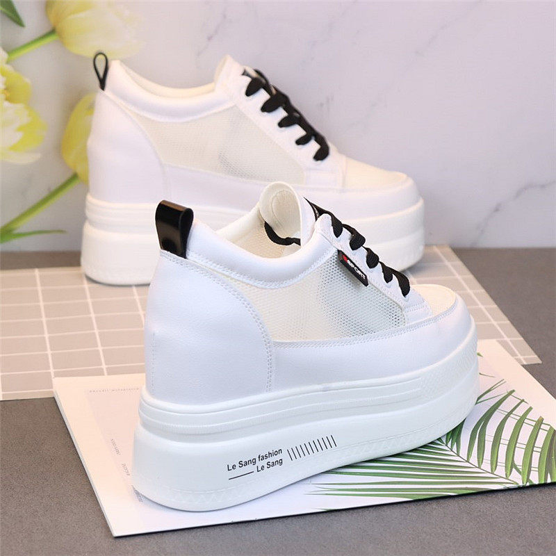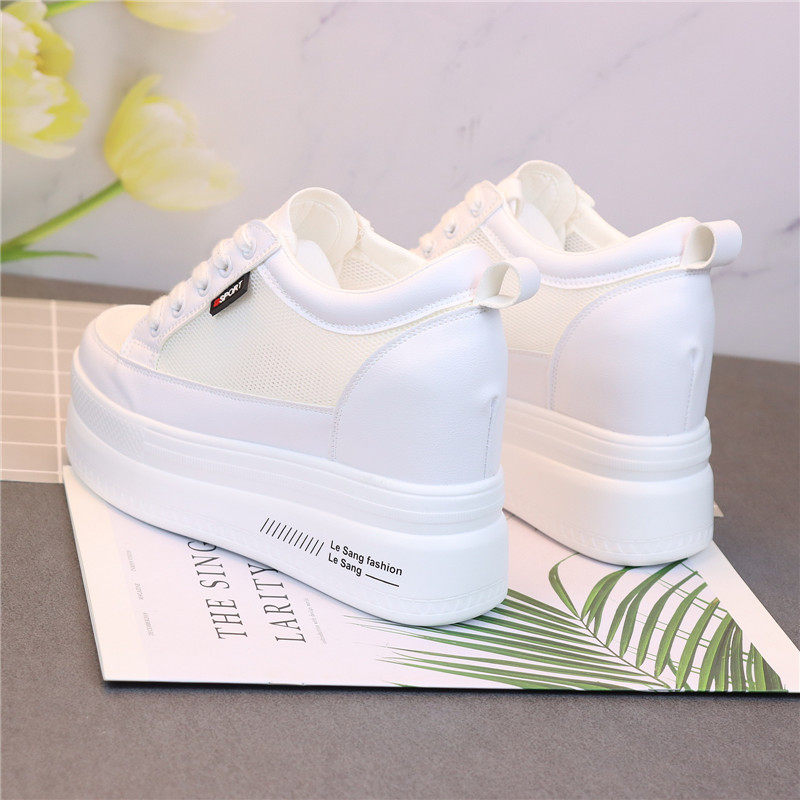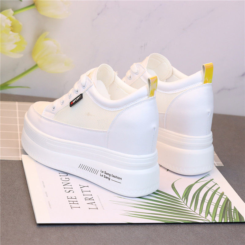 网面透气小白鞋女夏季2025新款显瘦内增高10cm坡跟休闲鞋小个子鞋