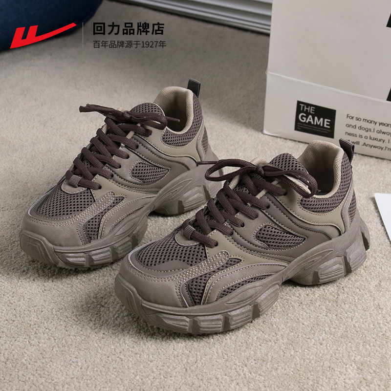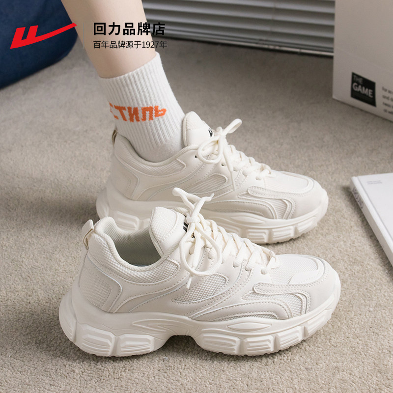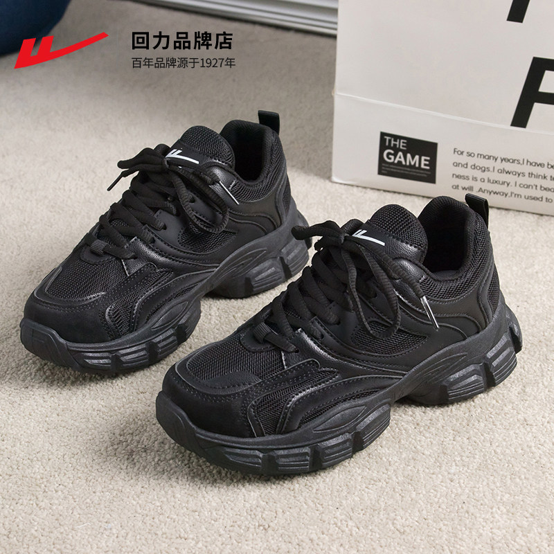 回力老爹鞋女款2026新款春季复古黑色显脚小休闲鞋厚底增高运动鞋