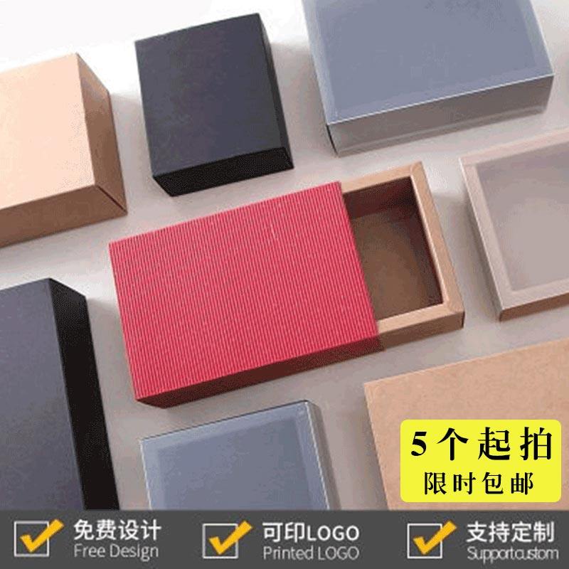 牛皮纸盒抽屉式白卡纸包装盒茶叶袜子内裤空盒小礼盒透明pvc定制