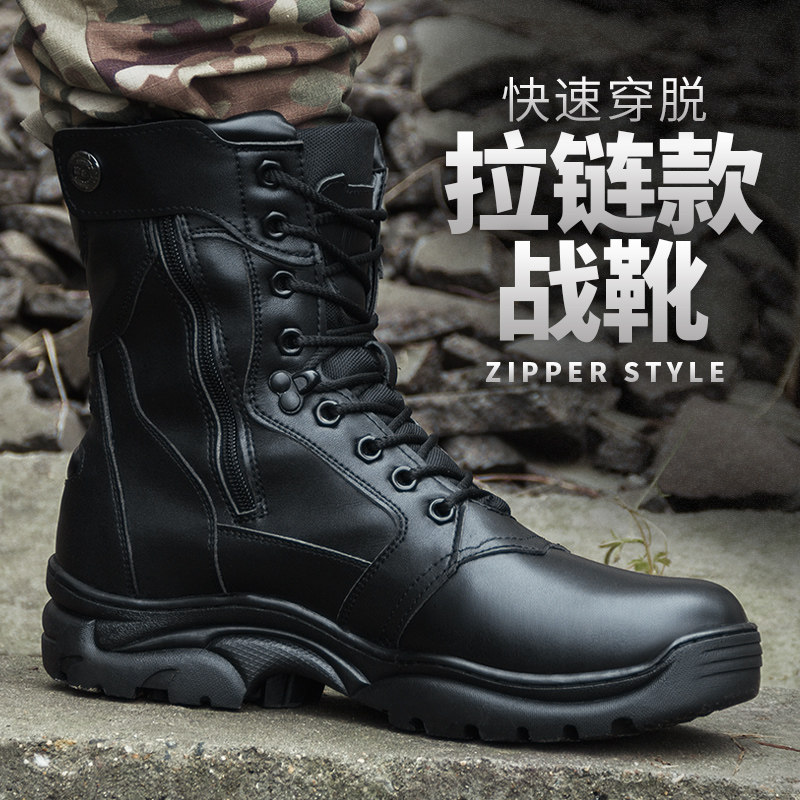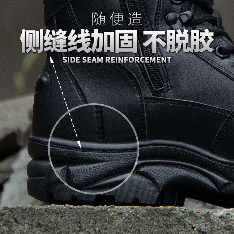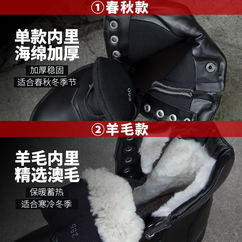 冬季新款作战训靴男侧拉链皮靴真皮保暖战术靴防水羊毛钢头棉鞋子