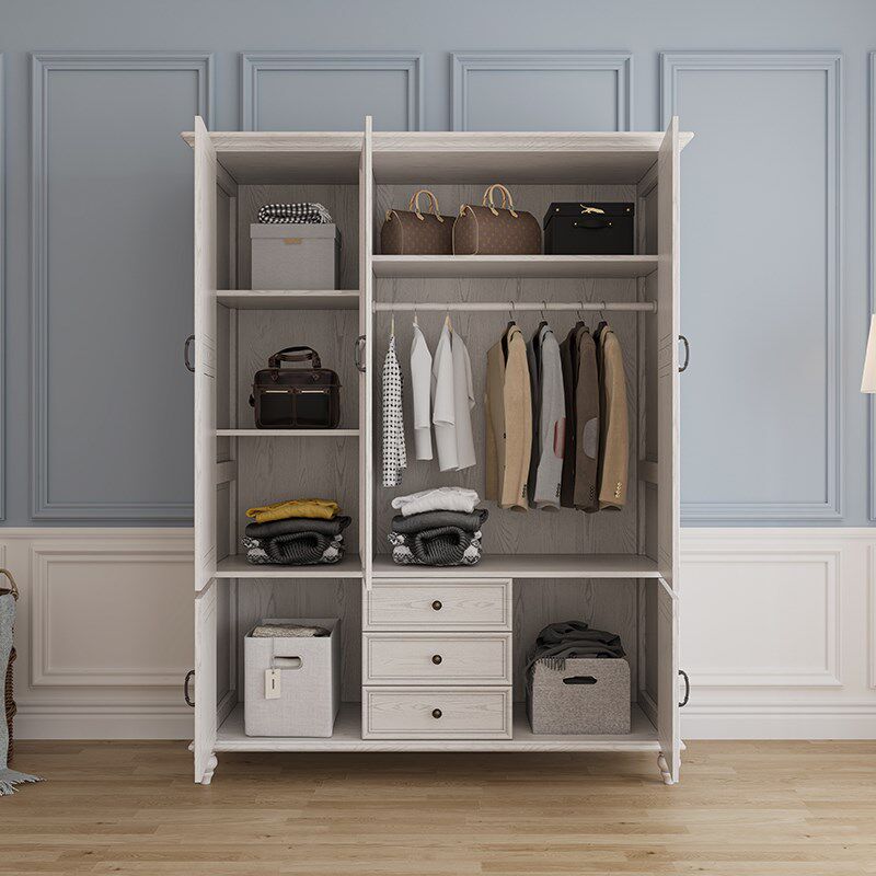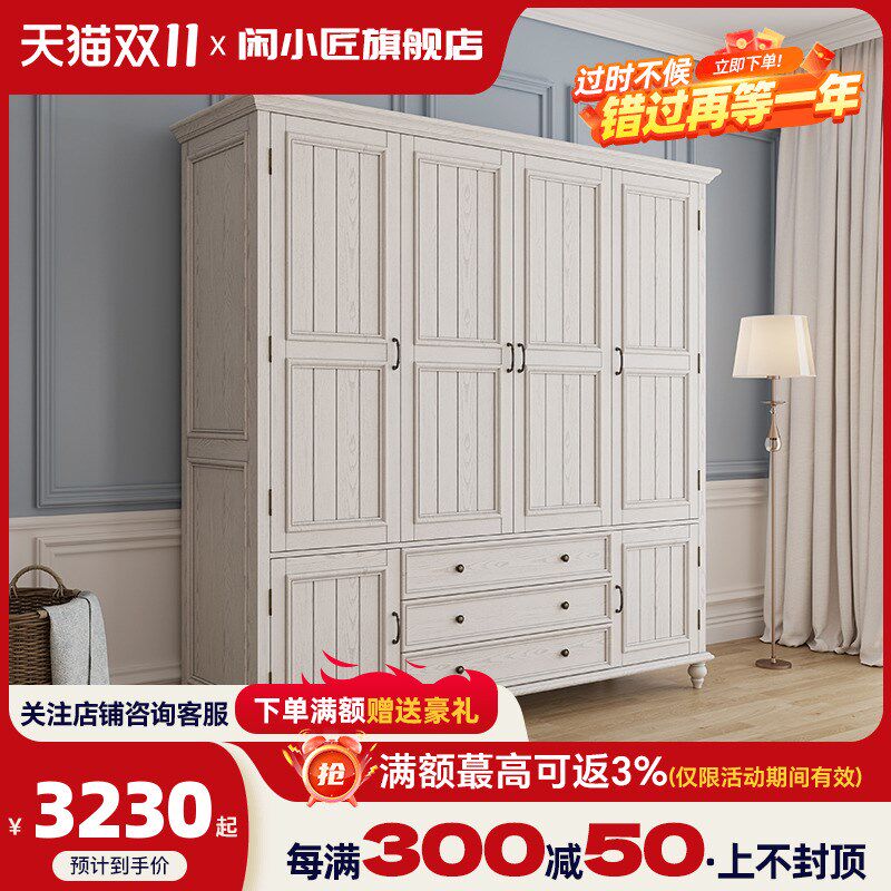 美式实木衣柜卧室收纳柜4门家用定制对开门靠墙衣橱柜简约衣帽间