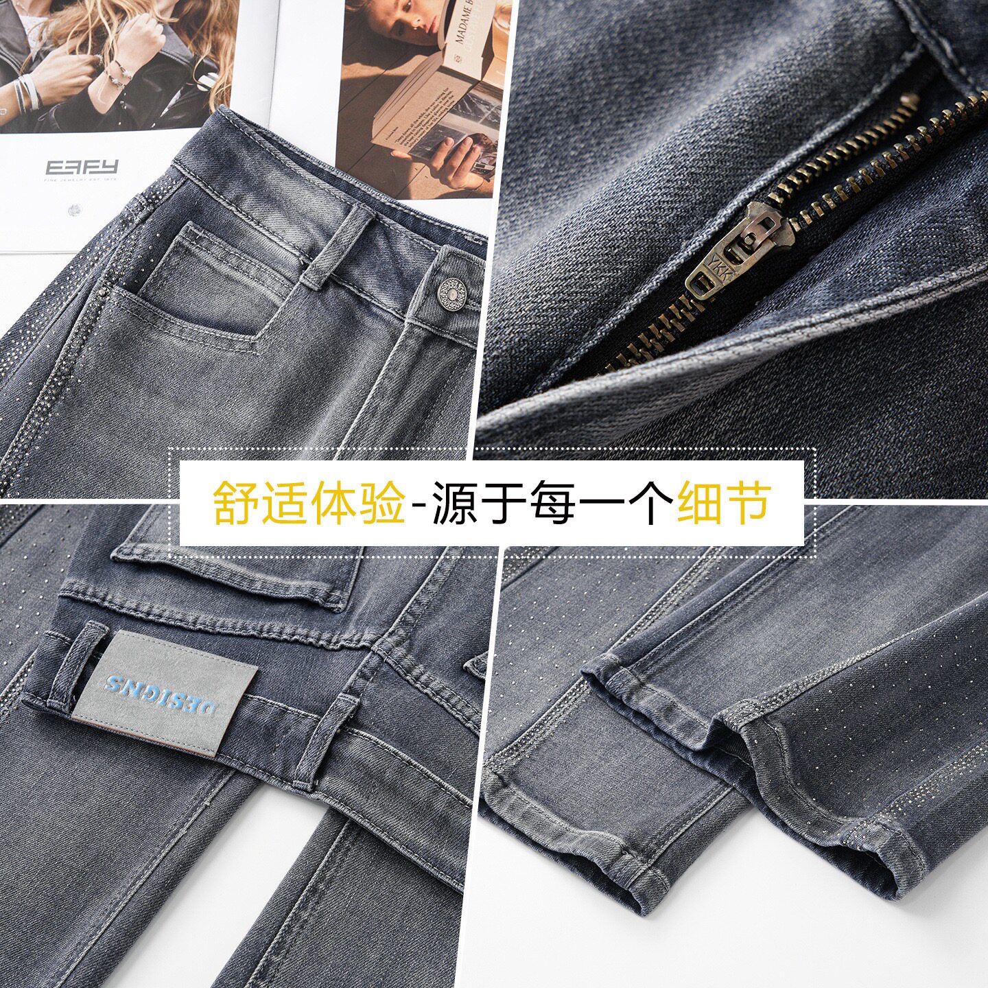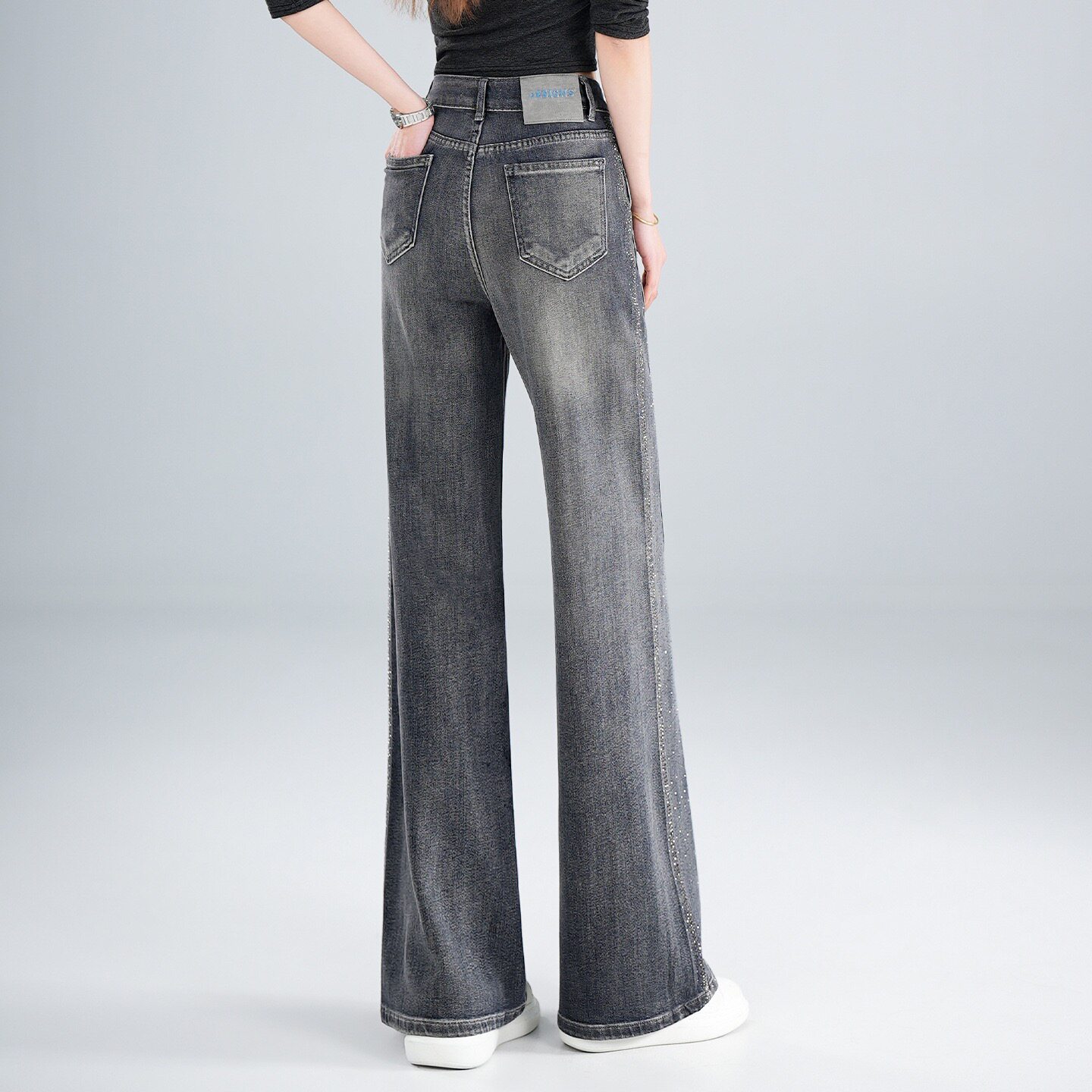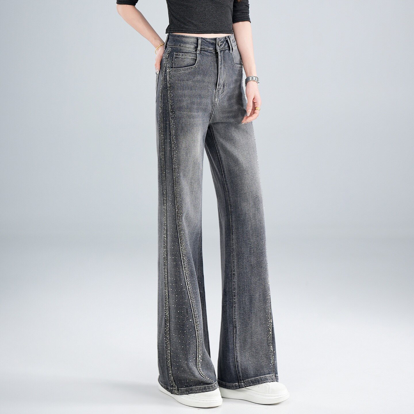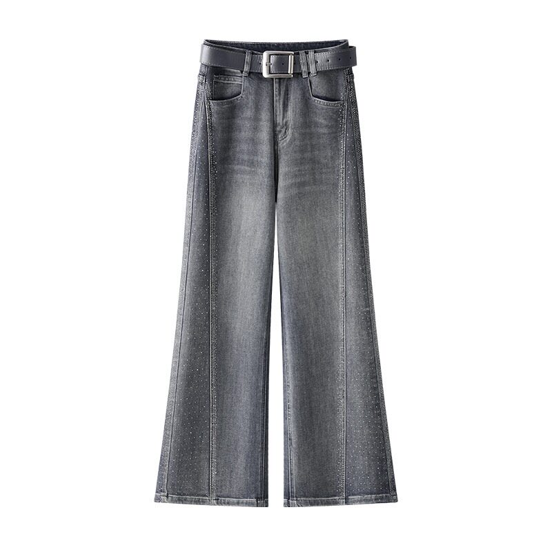 高档高级感烫钻阔腿牛仔裤女2026夏季薄款新款高腰显瘦宽松爆款直