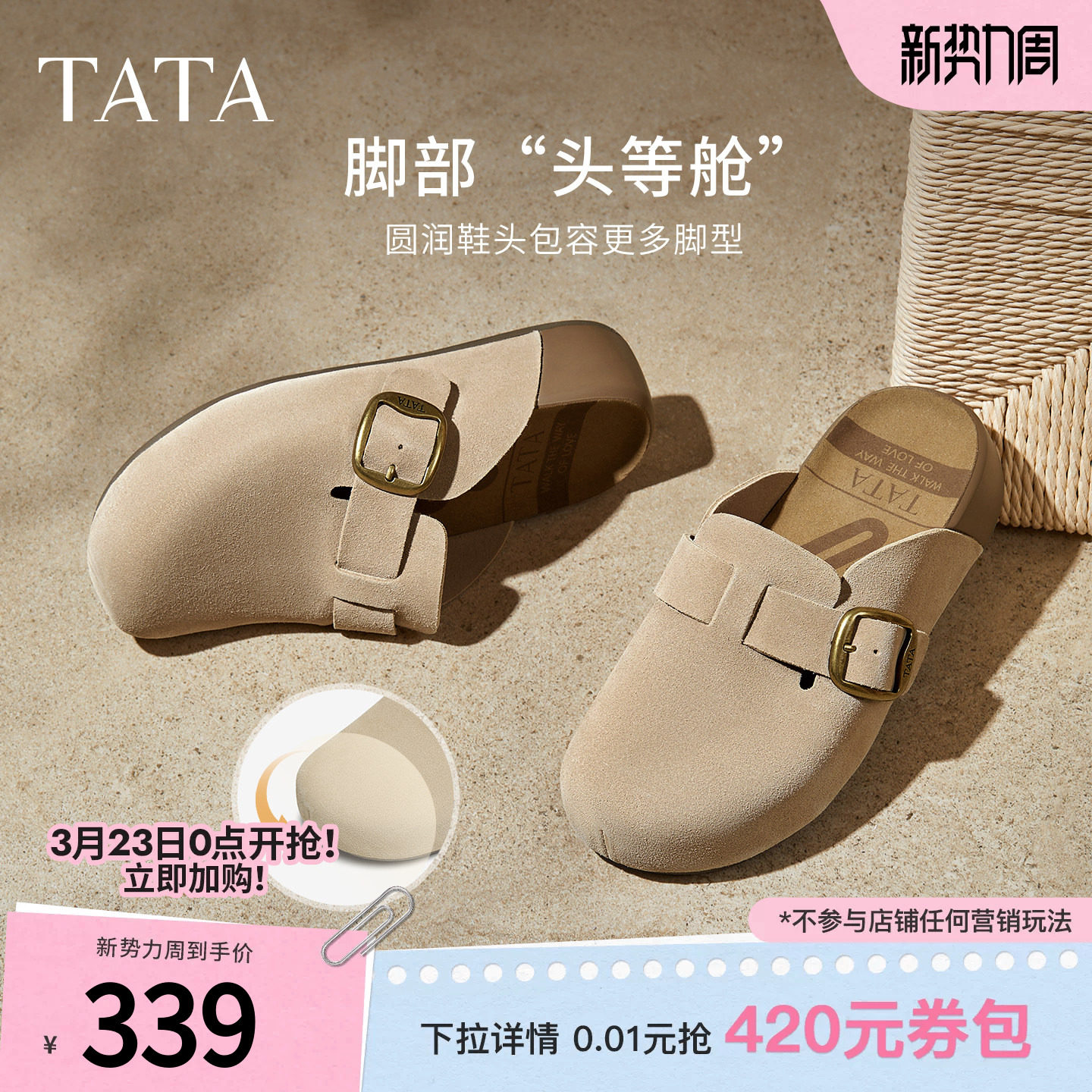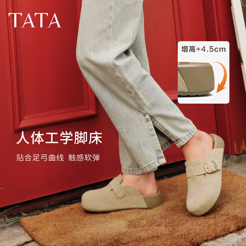TATA他她女鞋春季勃肯鞋可外穿增高厚底休闲鞋包头拖鞋4UL01CH5