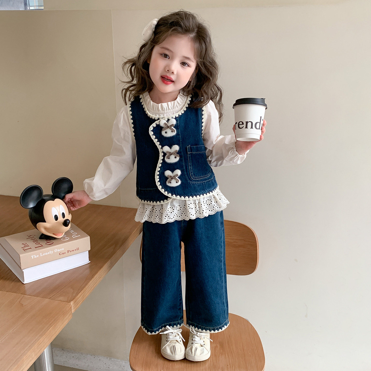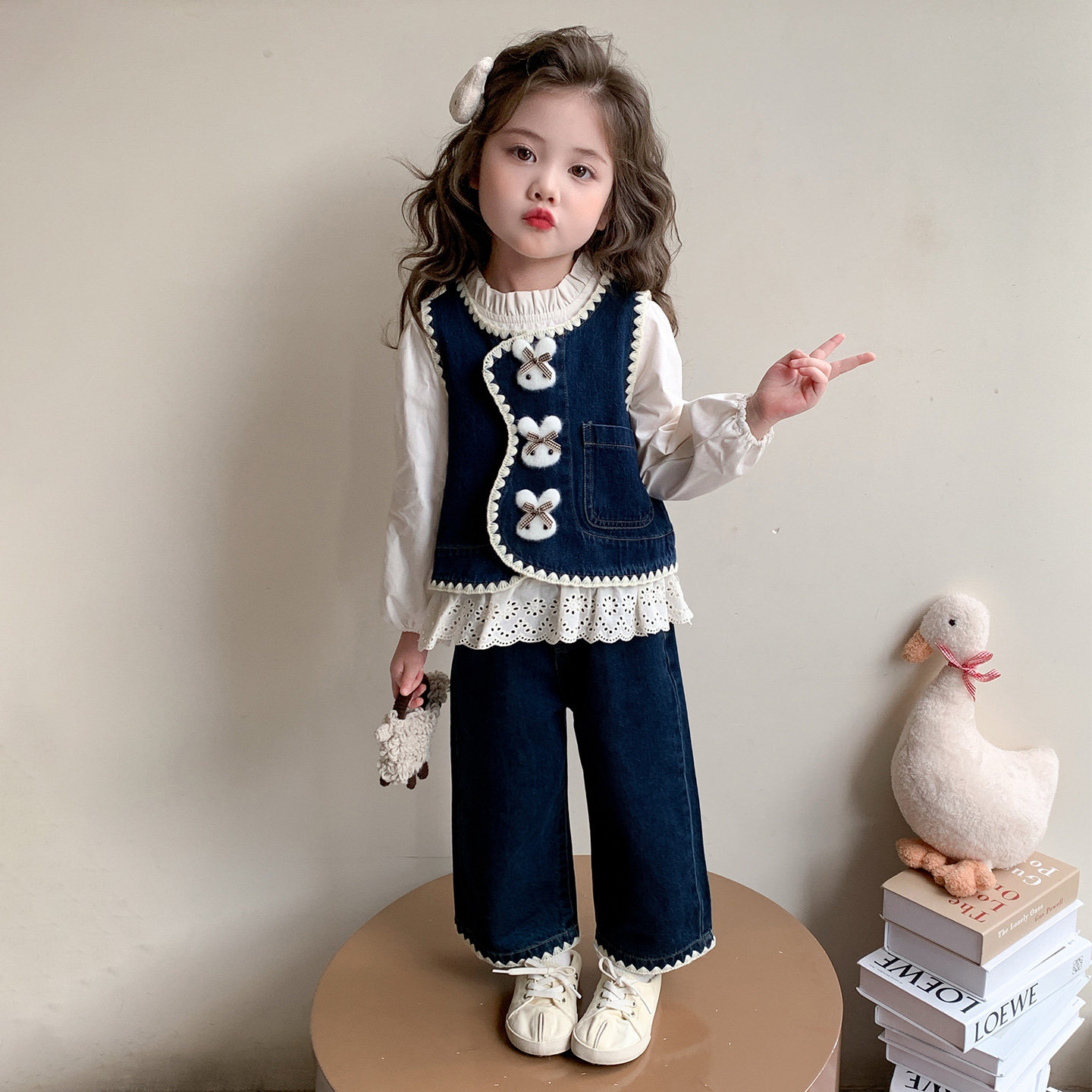 女童套装春秋季2026新款早春洋气穿搭儿童春装宝宝牛仔马甲三件套