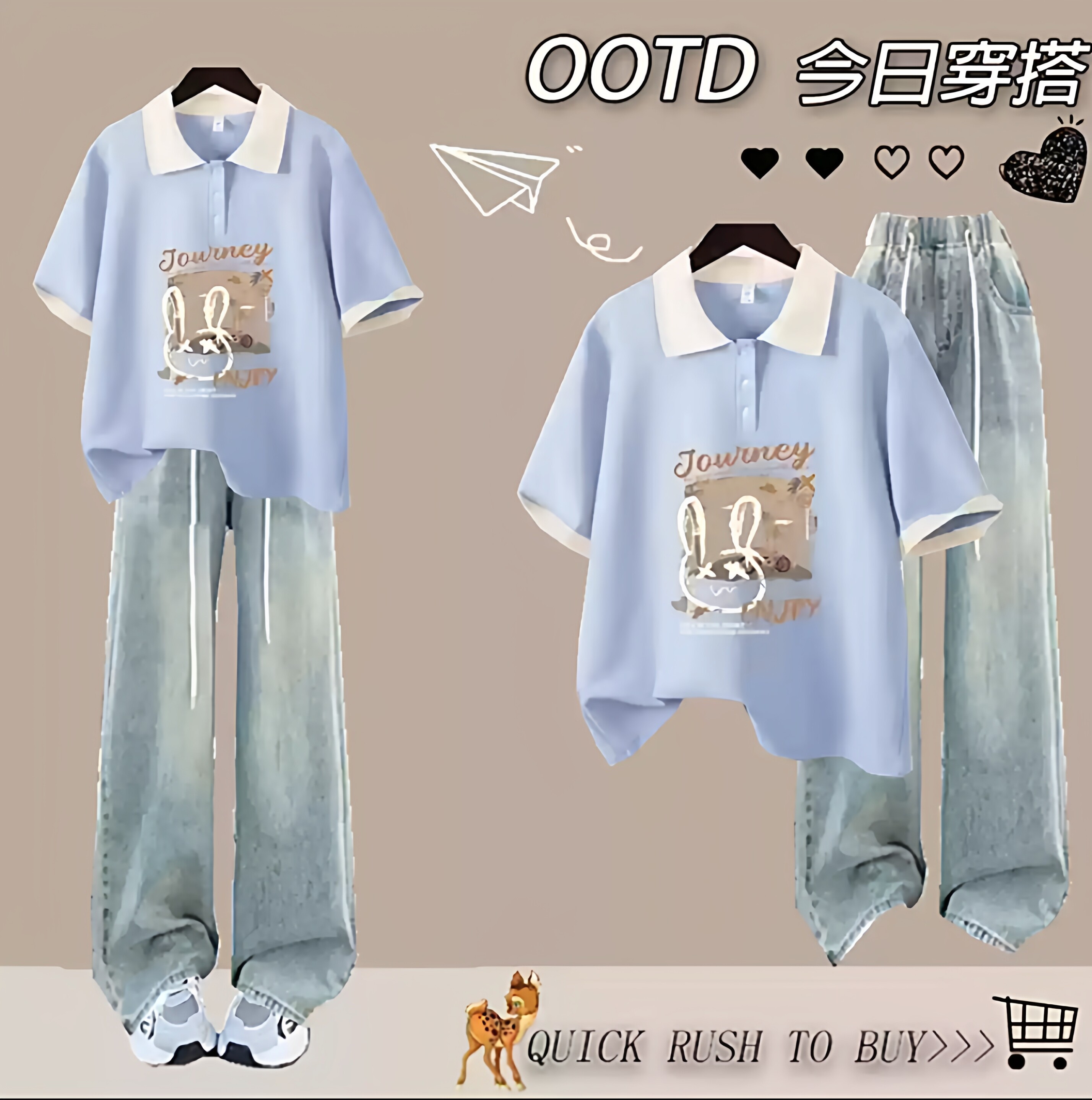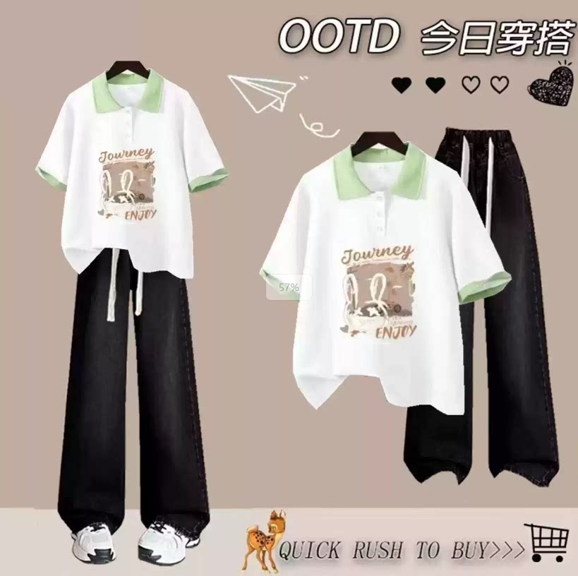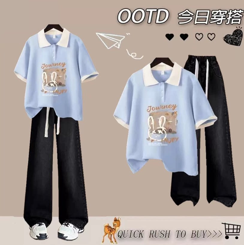 青少年女装套装2026新款显瘦两件套女夏季翻领短袖t恤初中学生