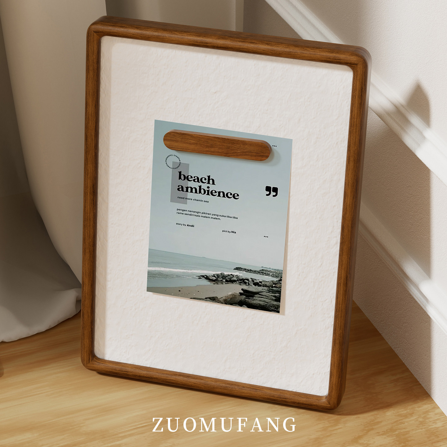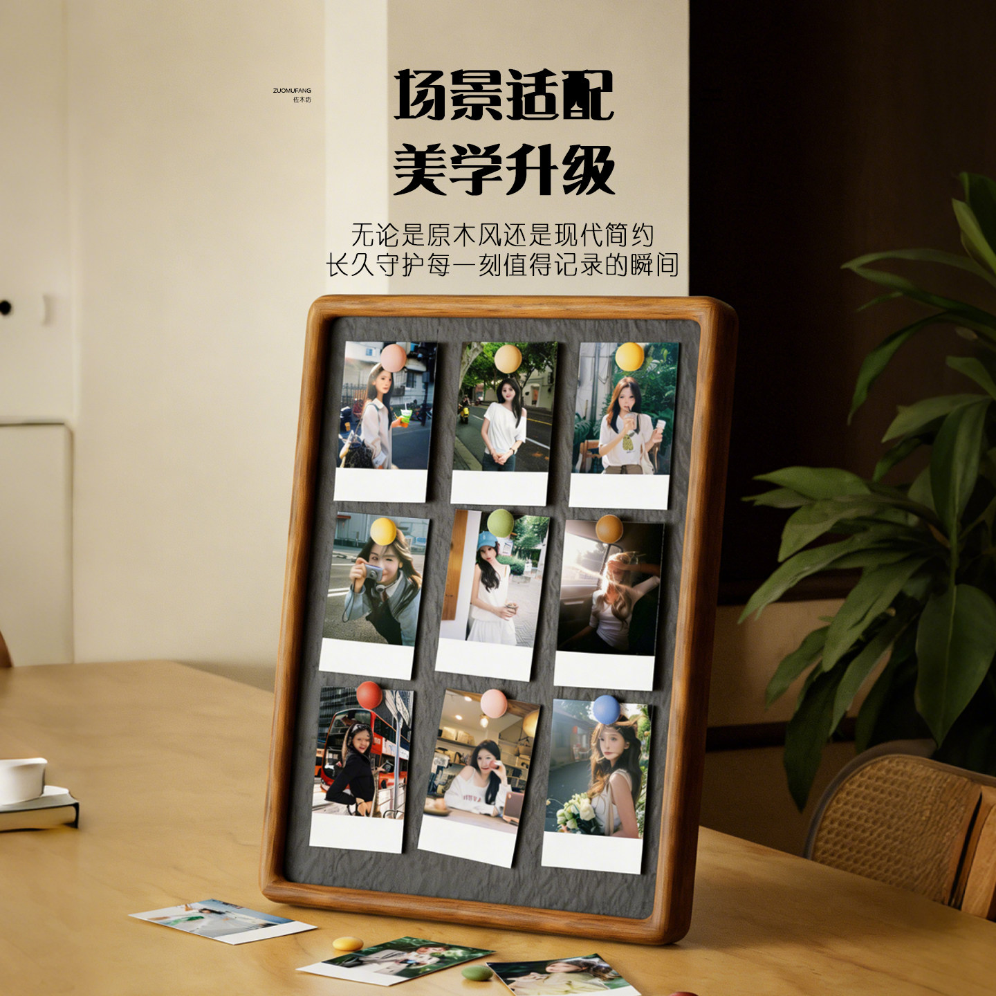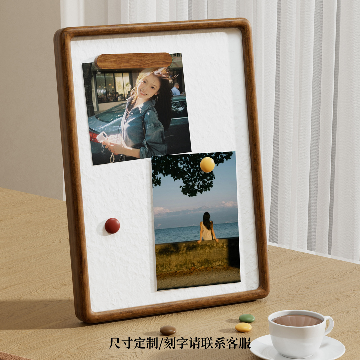 磁吸黑胡桃木相框摆台A4拍立得画框东巴纸实木榫卯框装裱框展示板