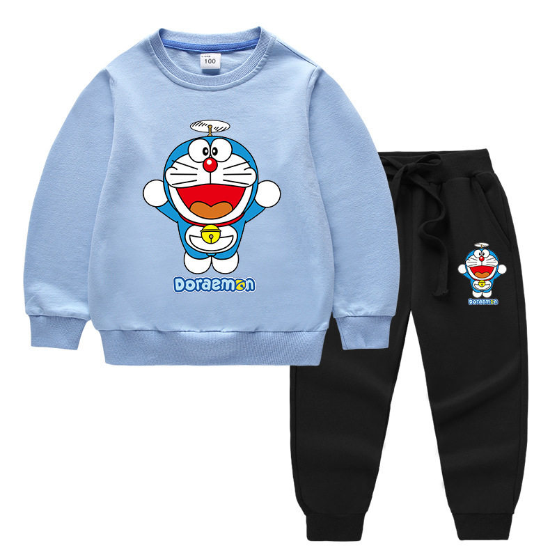 叮当猫衣服男童春装套装2026新款春秋儿童纯棉长袖卫衣两件套薄款