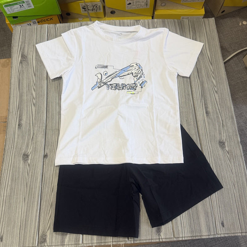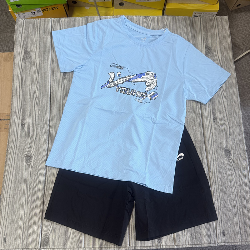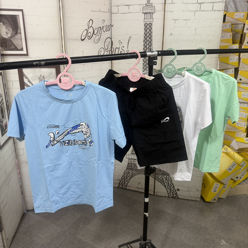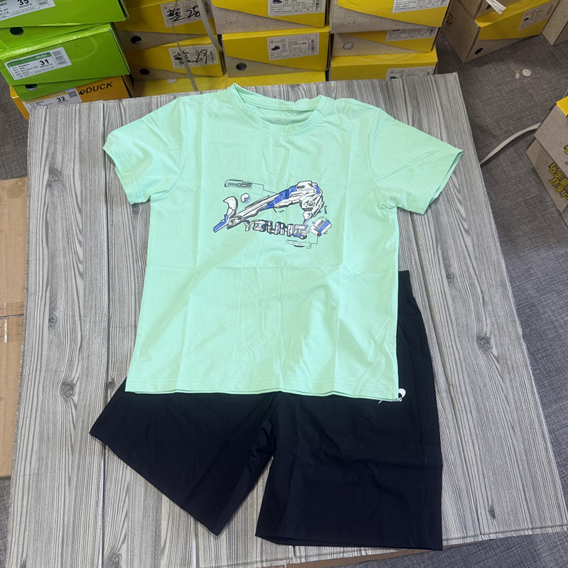 撤柜儿童运动套装夏季弹力速干薄款男女童短袖T恤+五分短裤两件套